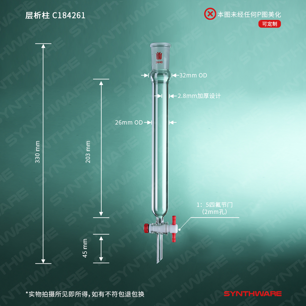 层析类 > 层析柱 > 无砂板闪式层析柱 > SYNTHWARE > 层析柱,φ26mm,有效长203mm,节门孔径:2mm,24/40 C184261