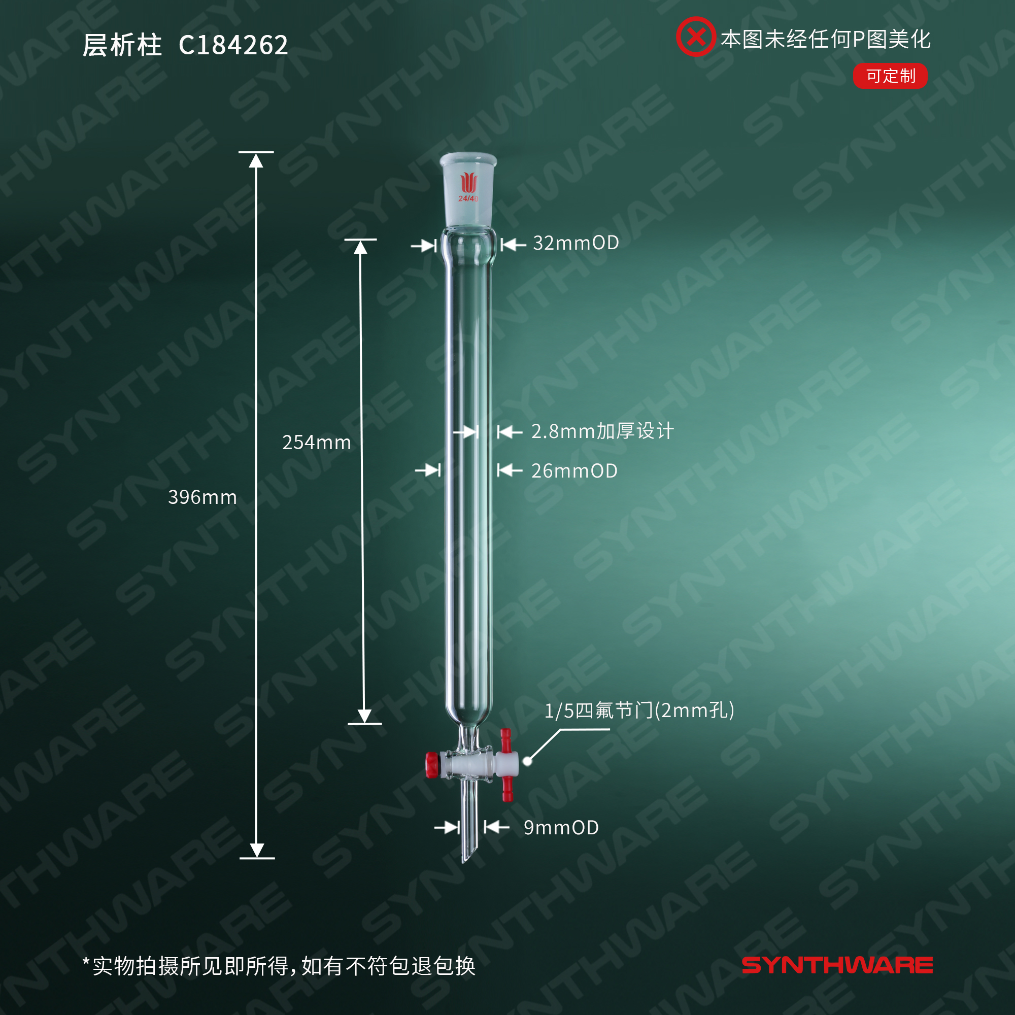 层析类 > 层析柱 > 无砂板闪式层析柱 > SYNTHWARE > 层析柱,φ26mm,有效长254mm,节门孔径:2mm,24/40 C184262