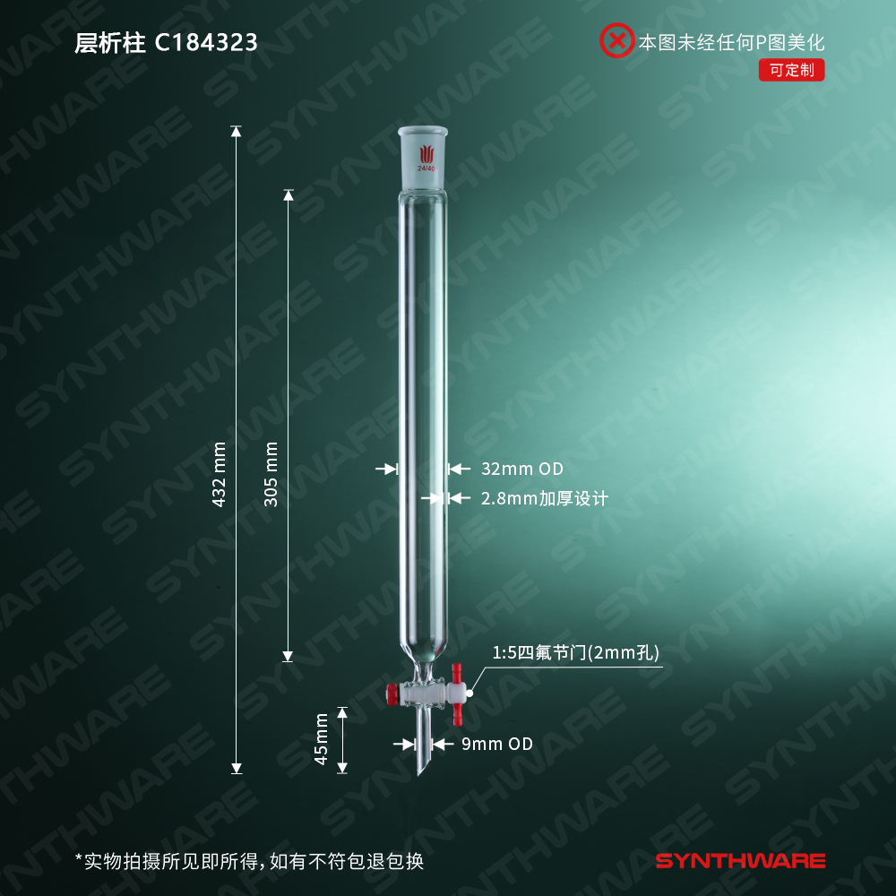 层析类 > 层析柱 > 无砂板闪式层析柱 > SYNTHWARE > 层析柱,φ32mm,有效长305mm,节门孔径:2mm,24/40 C184323