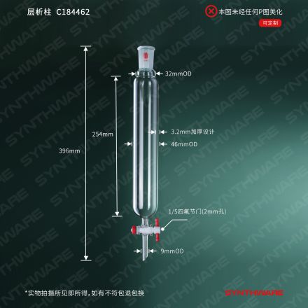 层析类 > 层析柱 > 无砂板闪式层析柱 > SYNTHWARE > 层析柱,φ46mm,有效长254mm,节门孔径:2mm,24/40 C184462
