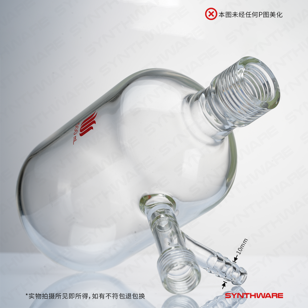 厚壁斜两口瓶,高强度,中间磨口:24/40,侧磨口:24/40,100ml F414400