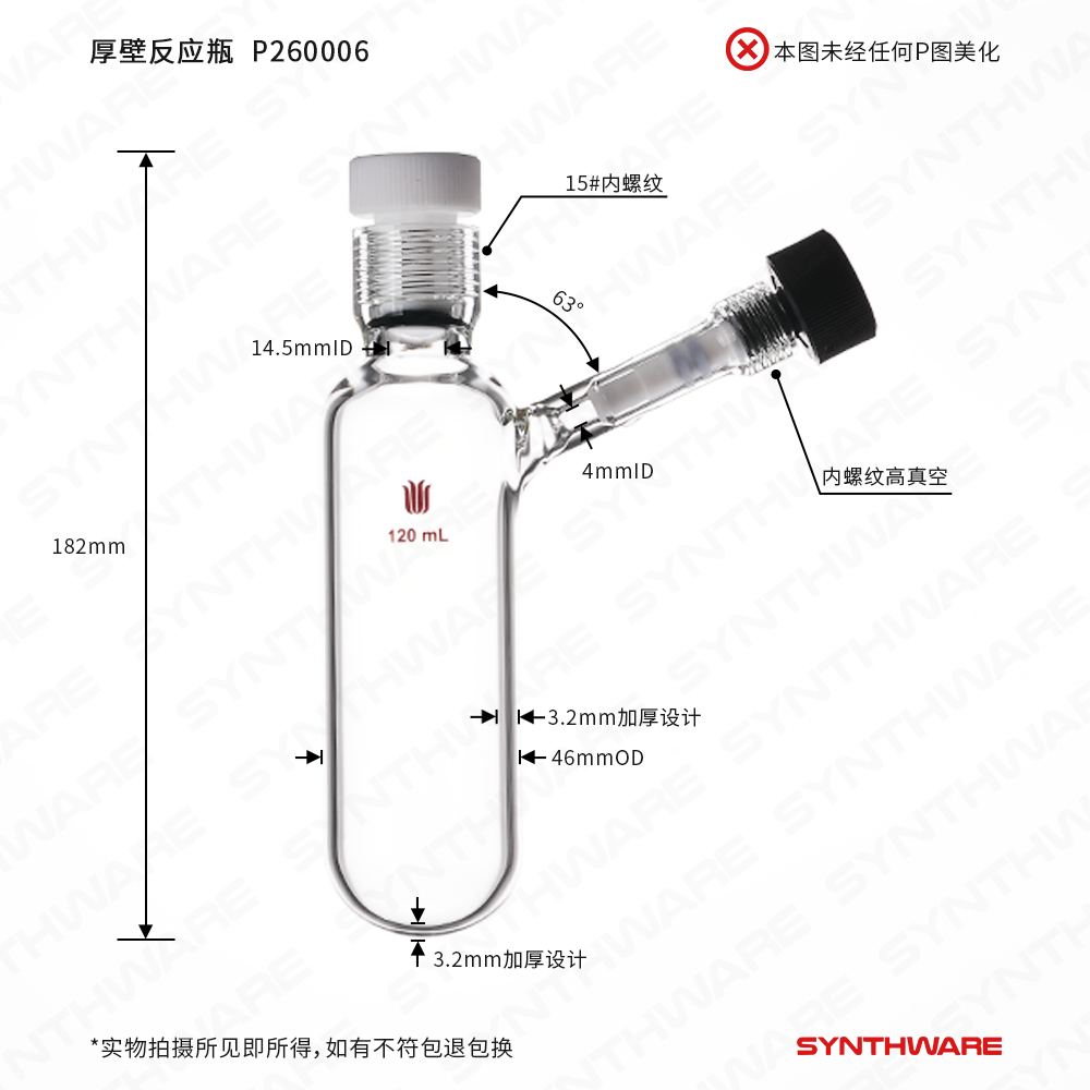 15#内螺纹120ml厚壁反应瓶,侧管7#内螺纹0-4mm高真空节门 P260006