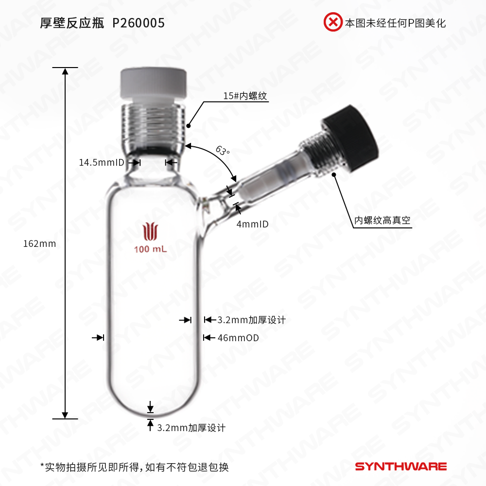 库存售完即止,镀膜 厚壁耐压瓶一套,100ml,15# P160005D