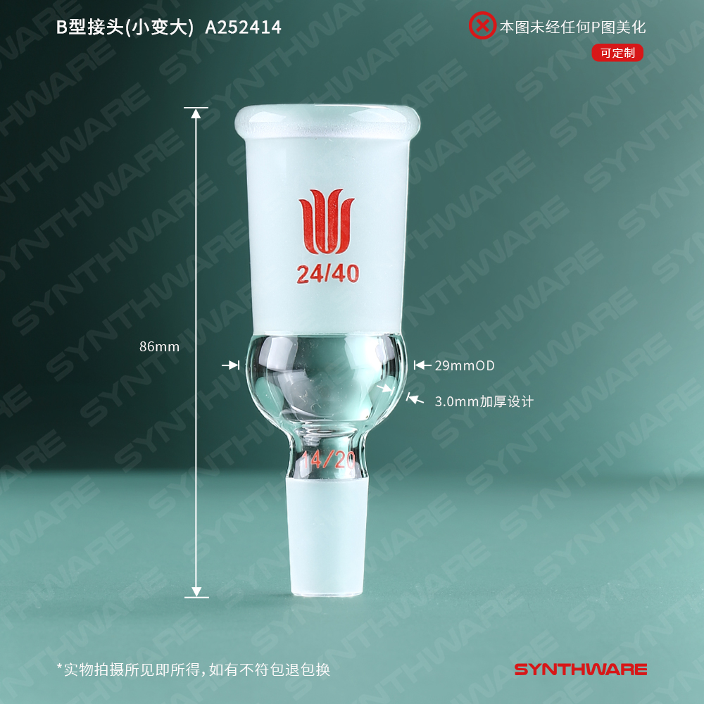 接头类 > B型接头 > B型接头(小口变大口) > SYNTHWARE > B型接头(小变大),上磨口:24/40,下磨口:14/20 A252414