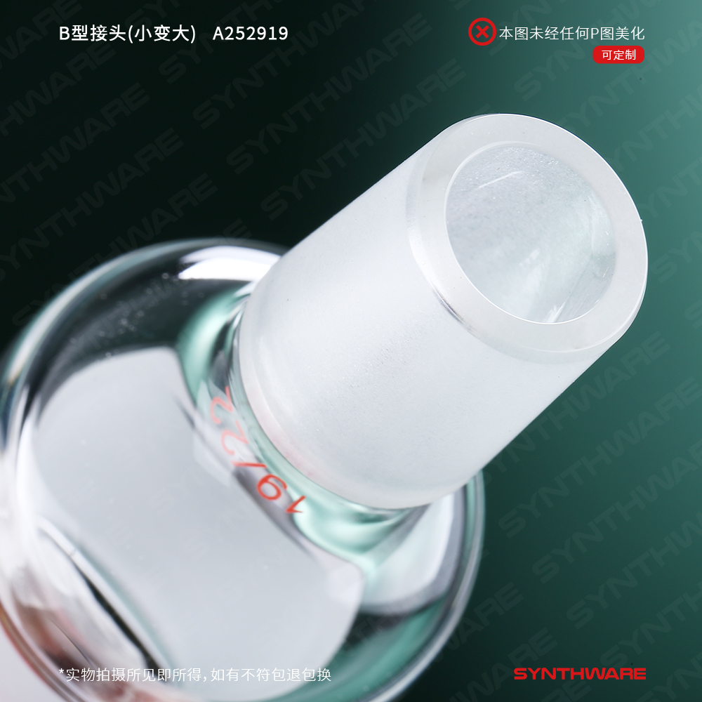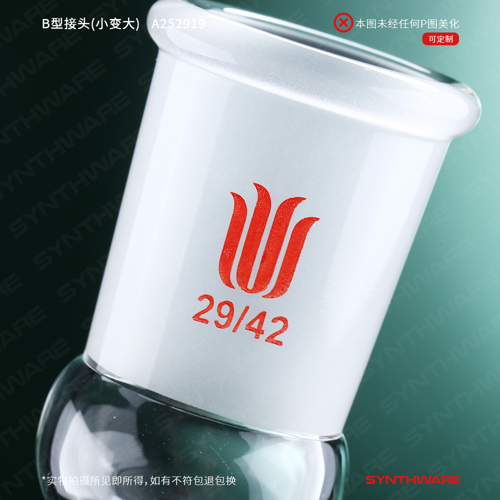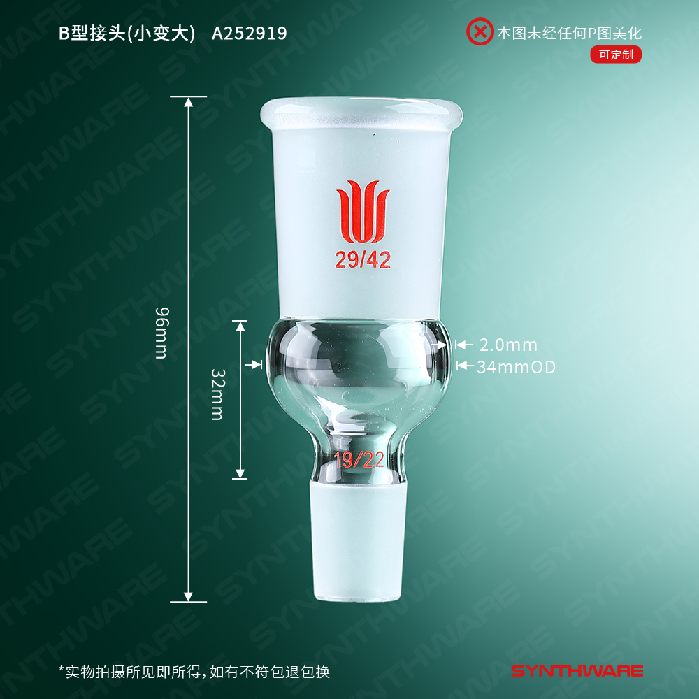 接头类 > B型接头 > B型接头(小口变大口) > SYNTHWARE > B型接头(小变大),上磨口:29/42,下磨口:19/22 A252919