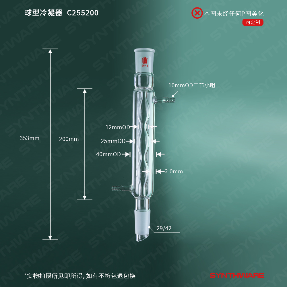 冷凝器 > 球形冷凝器 > 球形冷凝器-普通型 > SYNTHWARE > 球型冷凝器,29/42,有效长度:200mm,φ10mm小咀 C255200