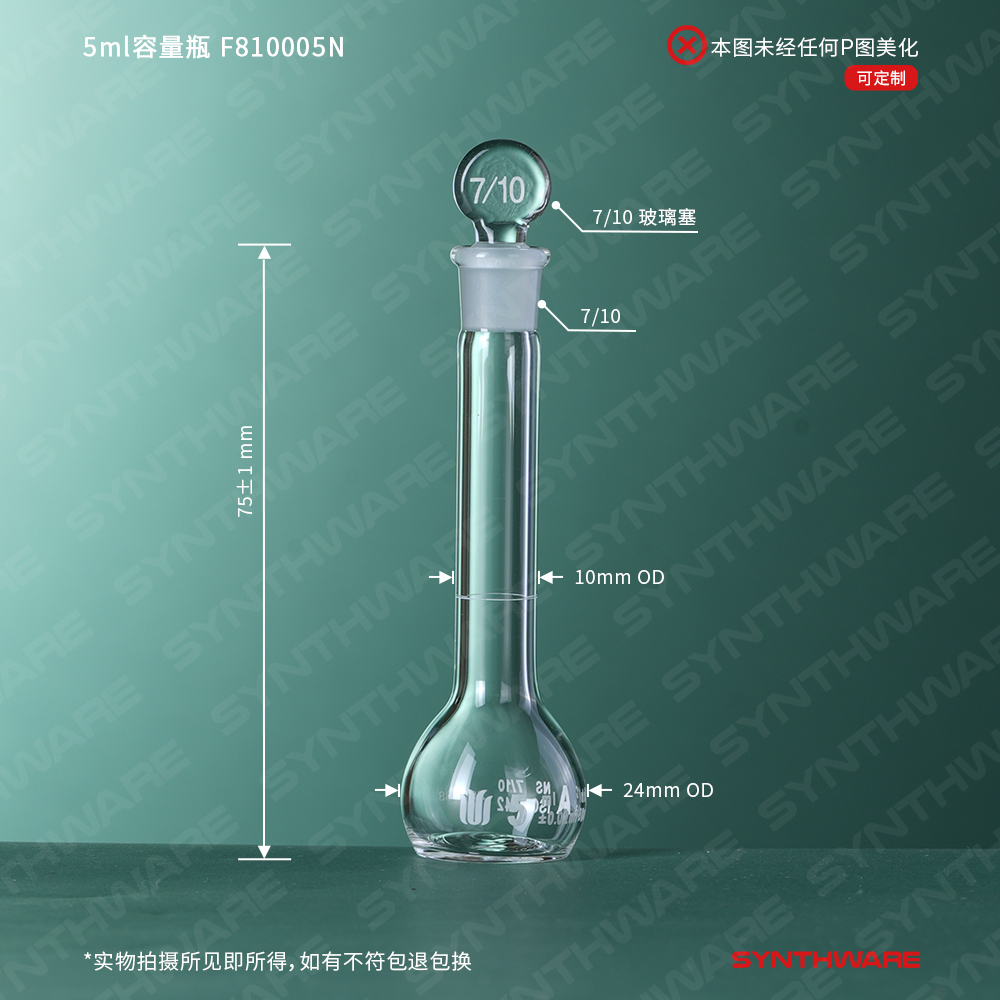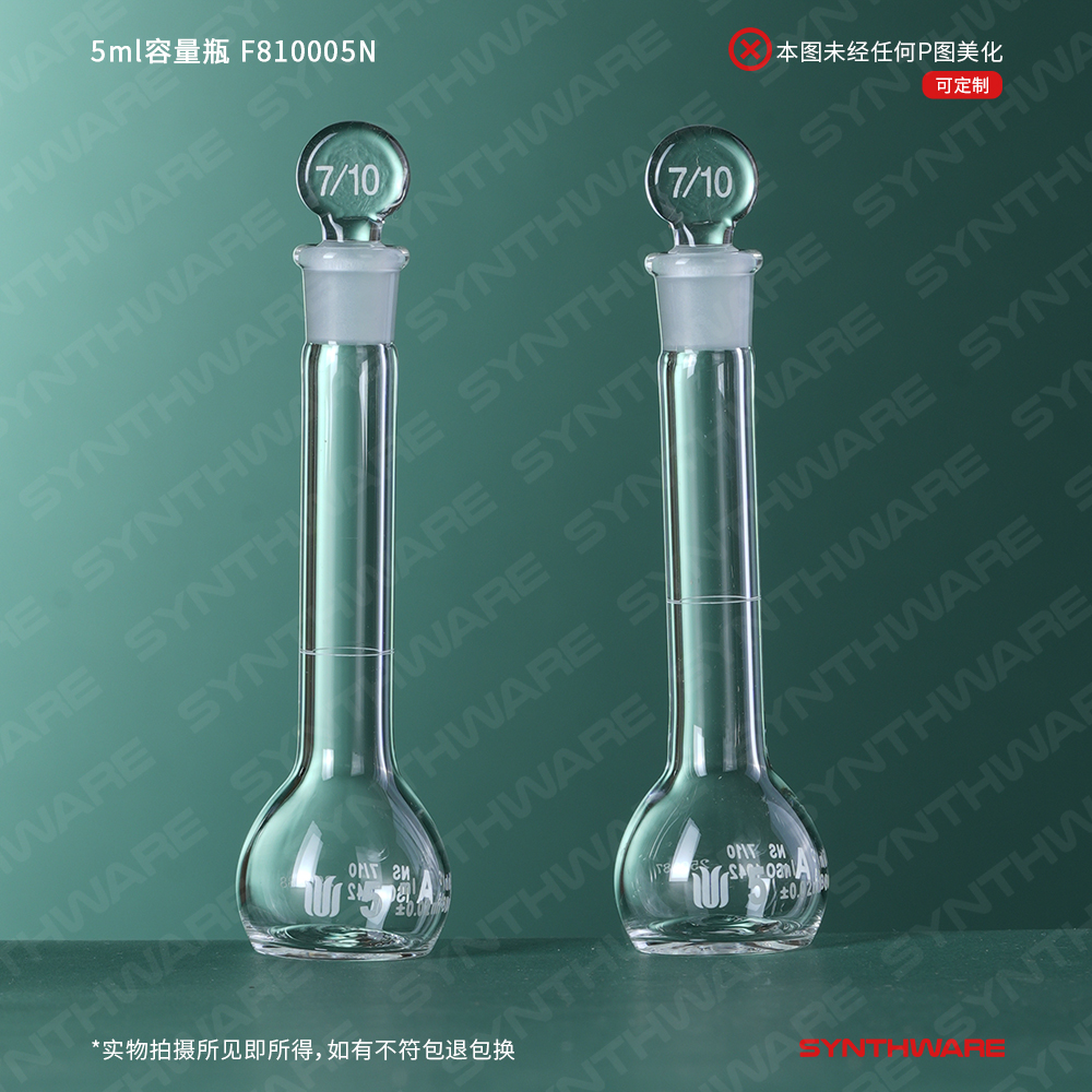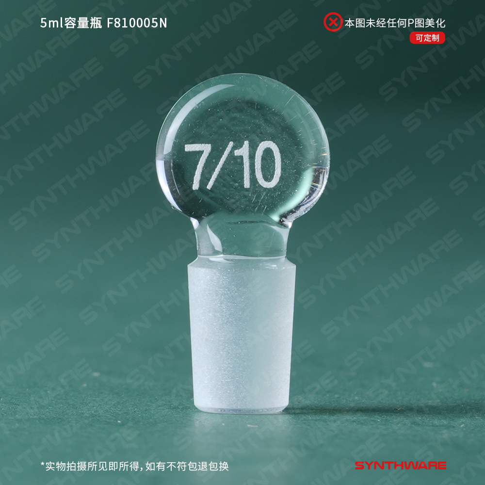 7/10口 5ml容量瓶,标配玻璃塞,带个体检测证书,2支/盒 F810005N