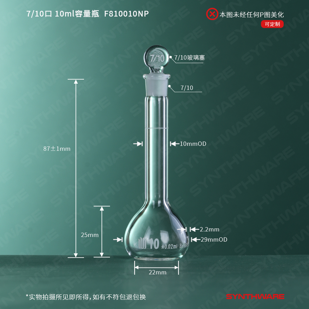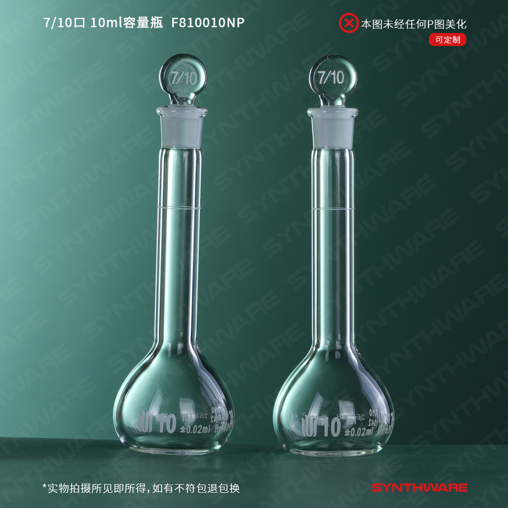 7/10口 10ml容量瓶,标配玻璃塞,不带个体检测证书,2支/盒 F810010NP