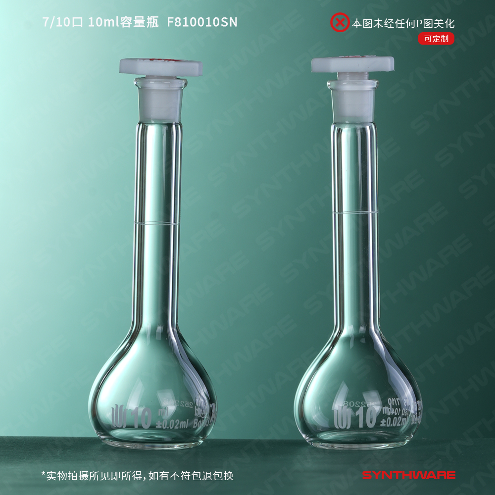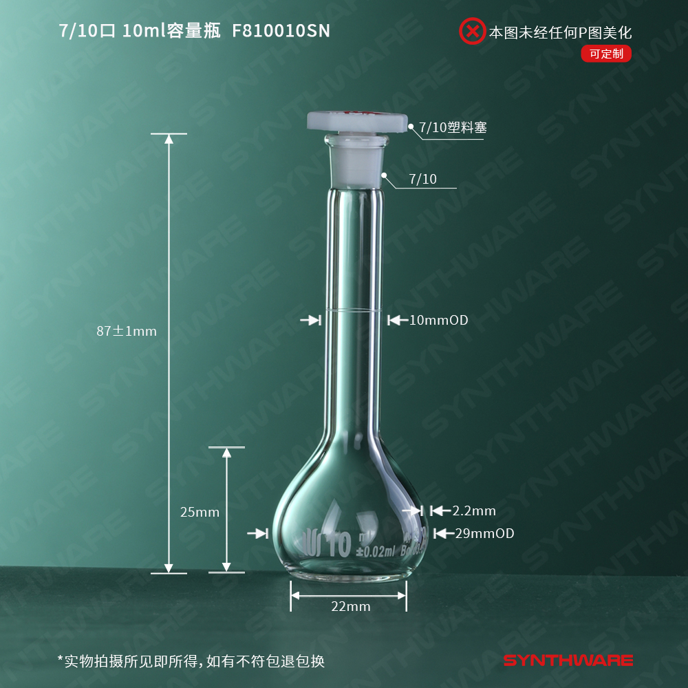 7/10口 10ml容量瓶,标配塑料塞,带个体检测证书,2支/盒 F810010SN