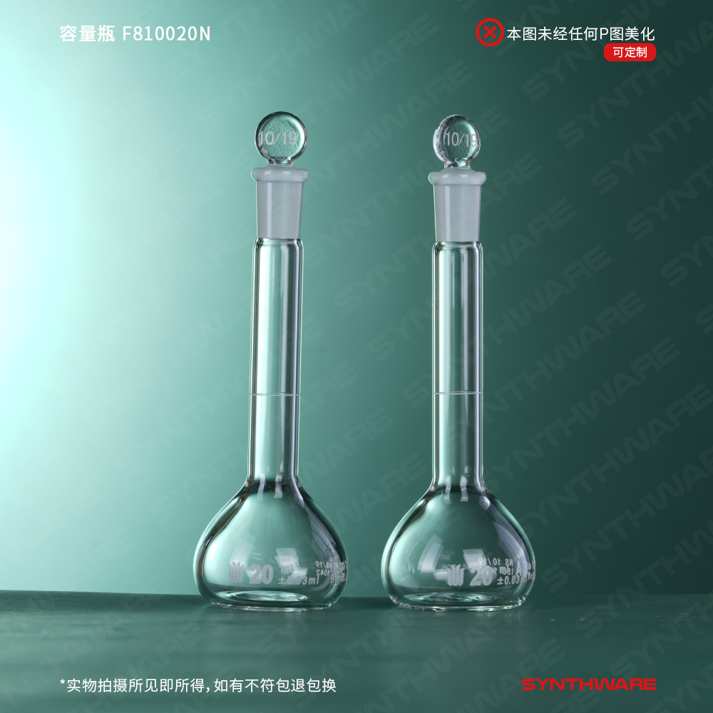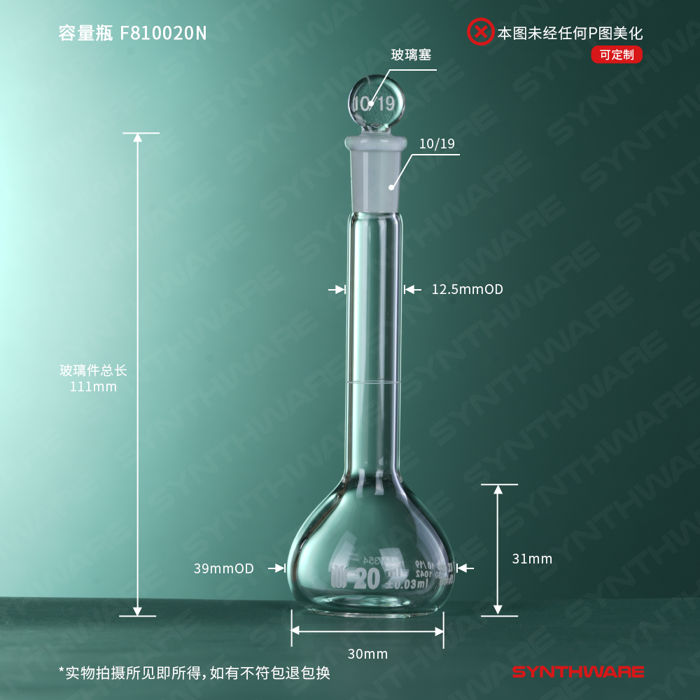 10/19口 20ml容量瓶,标配玻璃塞,带个体检测证书,2支/盒 F810020N