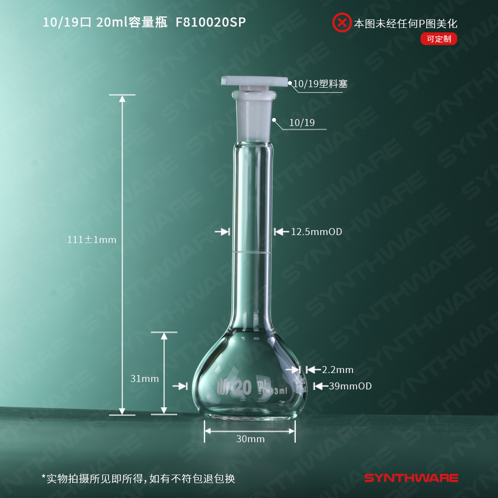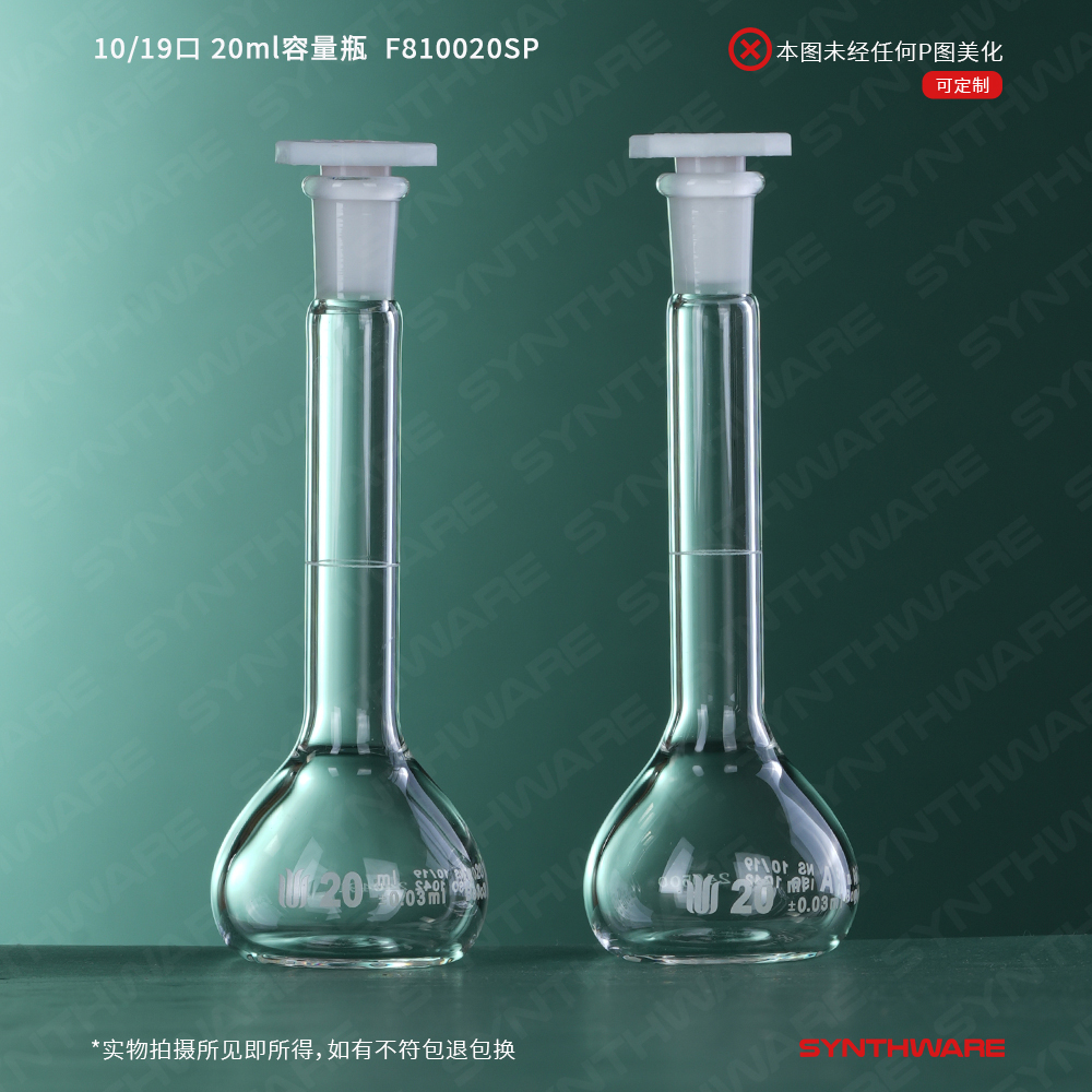 10/19口 20ml容量瓶,标配塑料塞,不带个体检测证书,2支/盒 F810020SP