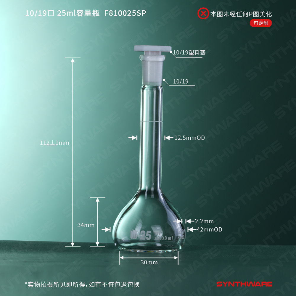 10/19口 25ml容量瓶,标配塑料塞,不带个体检测证书,2支/盒 F810025SP