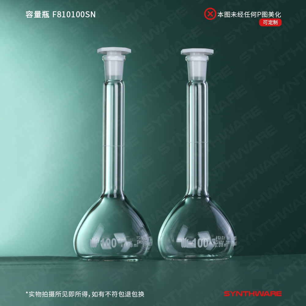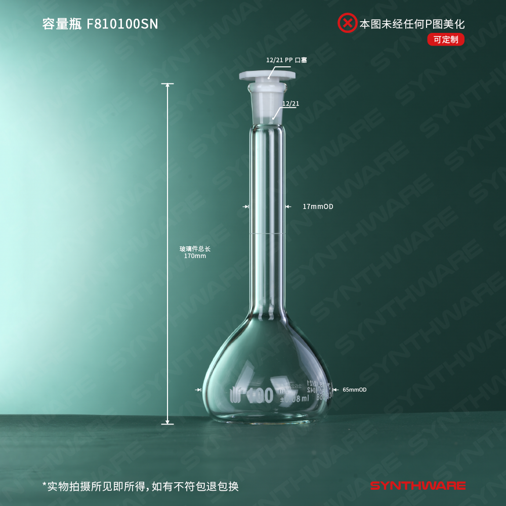 12/21口 100ml容量瓶,标配塑料塞,带个体检测证书,2支/盒 F810100SN