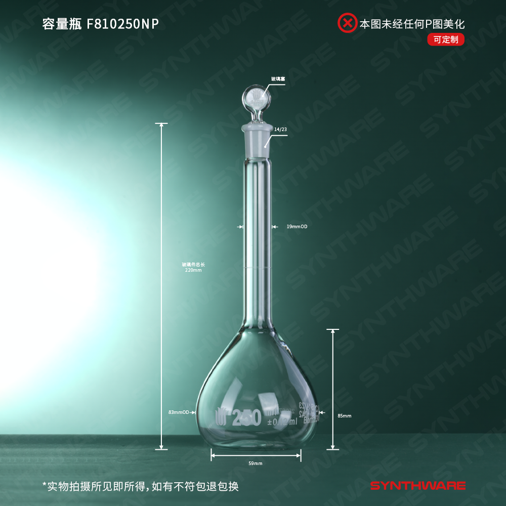 14/23口 250ml容量瓶,标配玻璃塞,不带个体检测证书,2支/盒 F810250NP