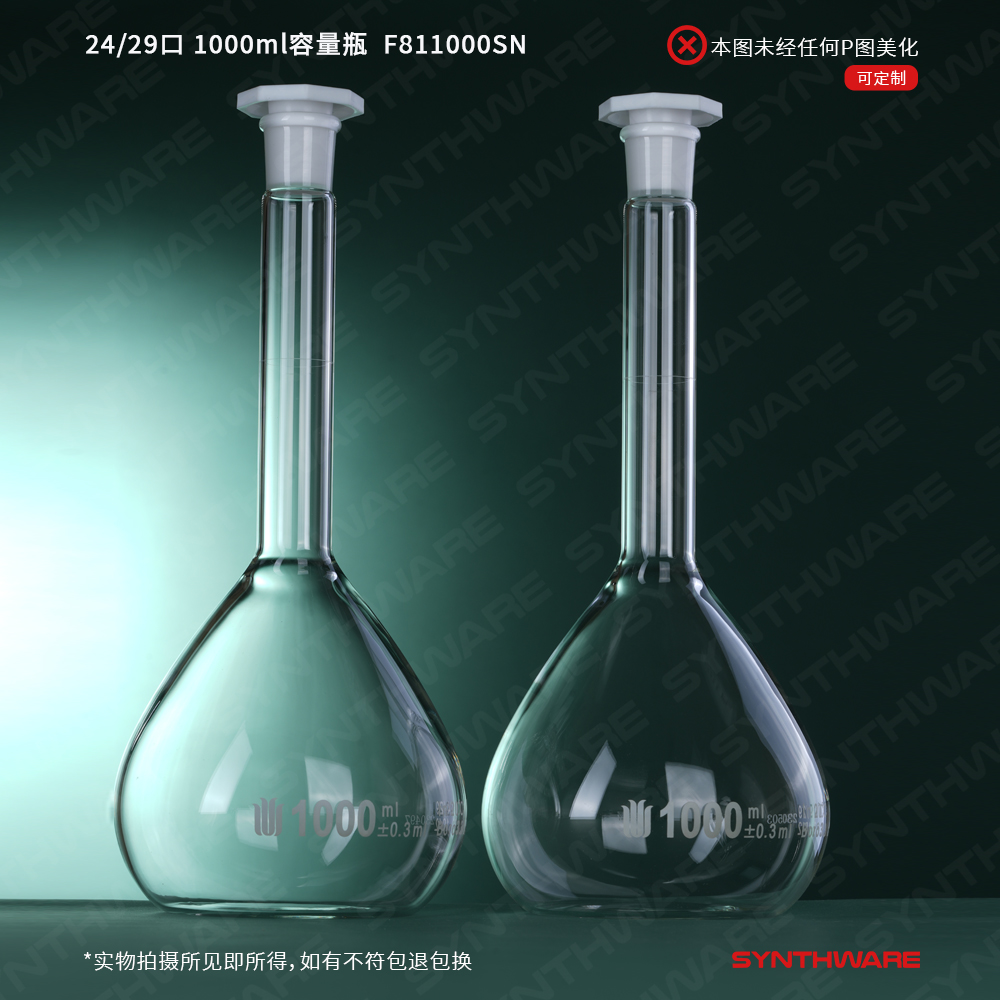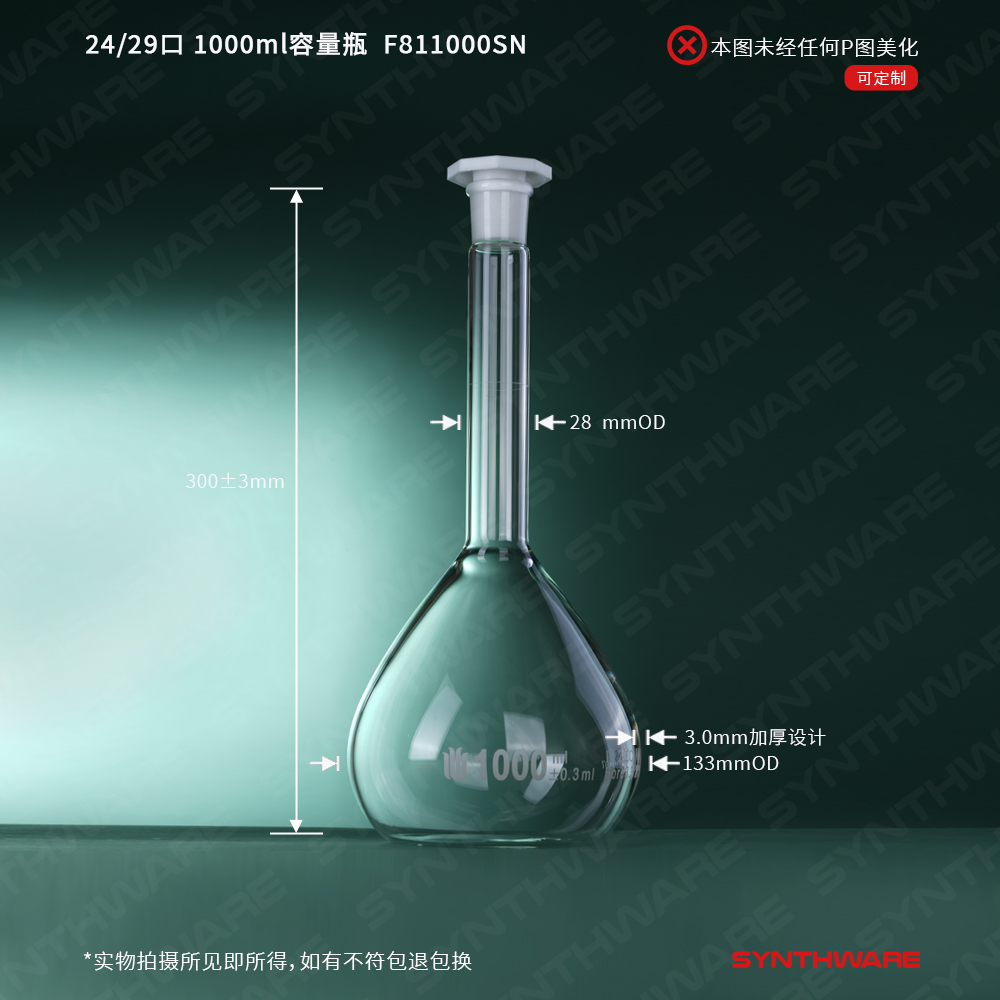 24/29口 1000ml容量瓶,标配塑料塞,带个体检测证书,2支/盒 F811000SN