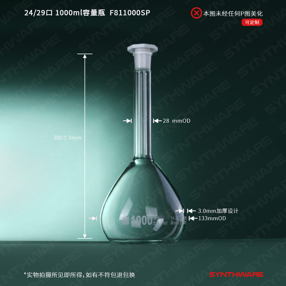 24/29口 1000ml容量瓶,标配塑料塞,不带个体检测证书,2支/盒 F811000SP