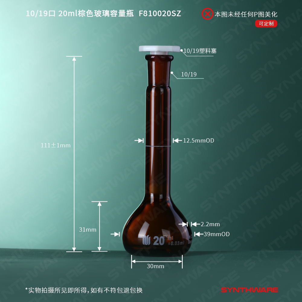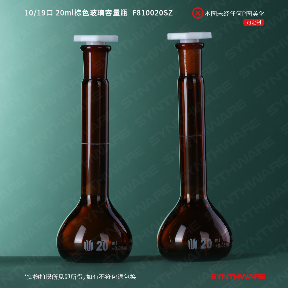 10/19口 20ml棕色玻璃容量瓶,标配塑料塞,不带个体检测证书,2支/盒 F810020SZ