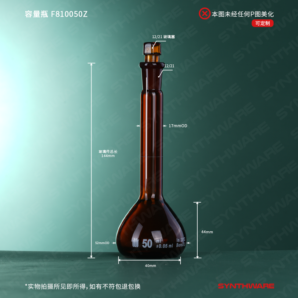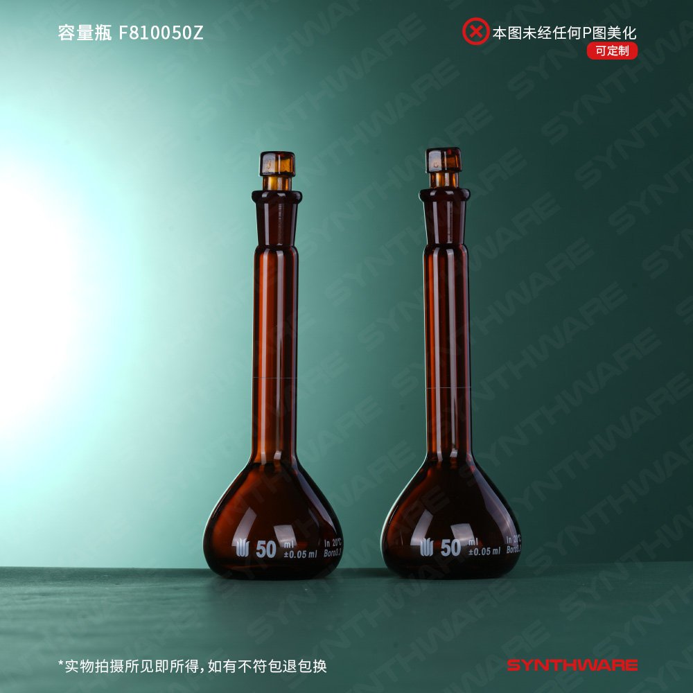 12/21口 50ml棕色容量瓶,标配玻璃塞,带个体检测证书,2支/盒 F810050Z
