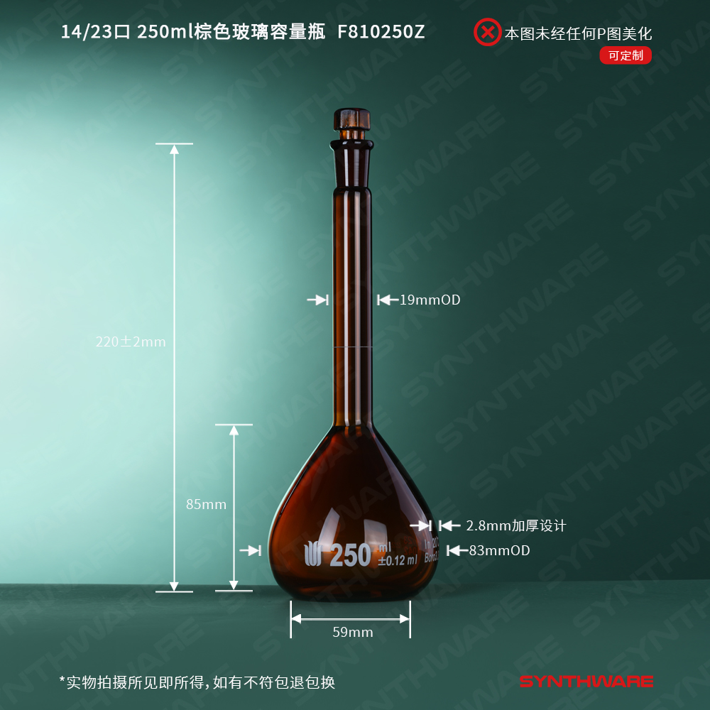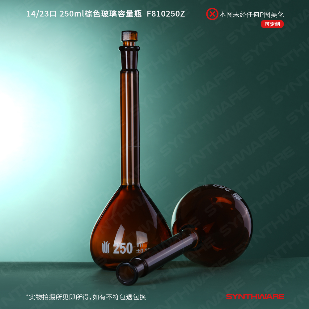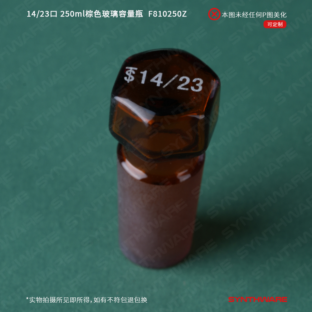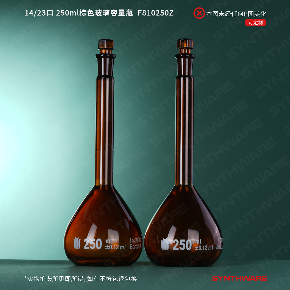 14/23口 250ml棕色容量瓶,标配玻璃塞,带个体检测证书,2支/盒 F810250Z
