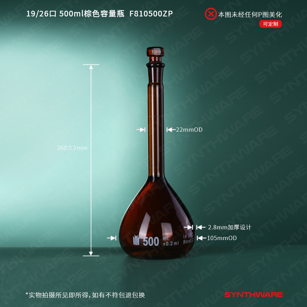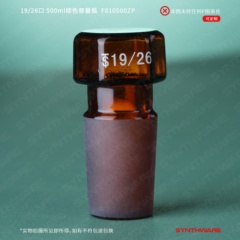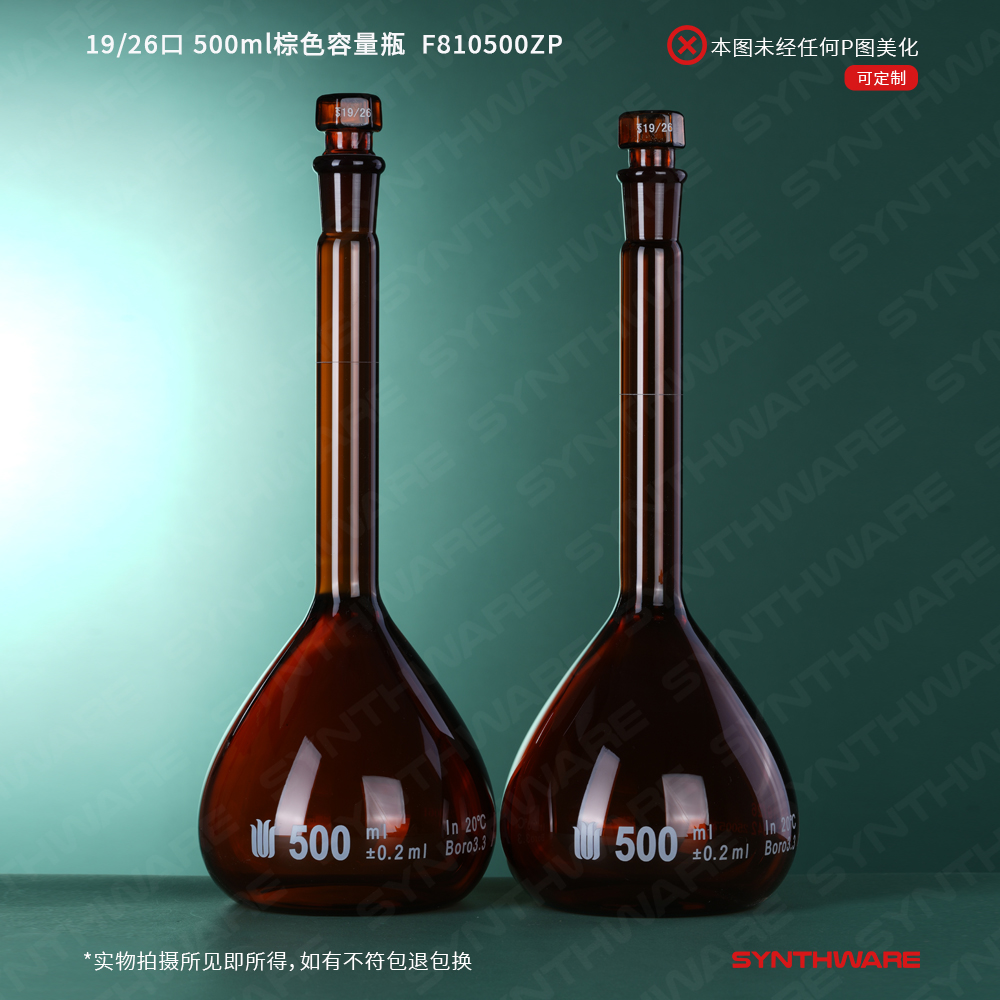 19/26口 500ml棕色容量瓶,标配玻璃塞,不带个体检测证书,2支/盒 F810500ZP