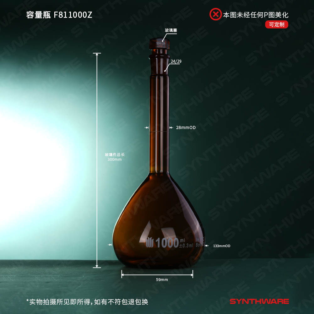24/29口 1000ml棕色容量瓶,标配玻璃塞,带个体检测证书,2支/盒 F811000Z