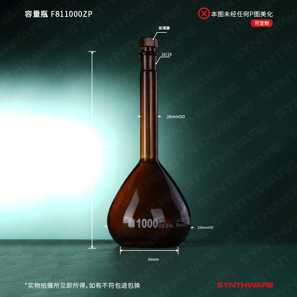 24/29口 1000ml棕色容量瓶,标配玻璃塞,不带个体检测证书,2支/盒 F811000ZP
