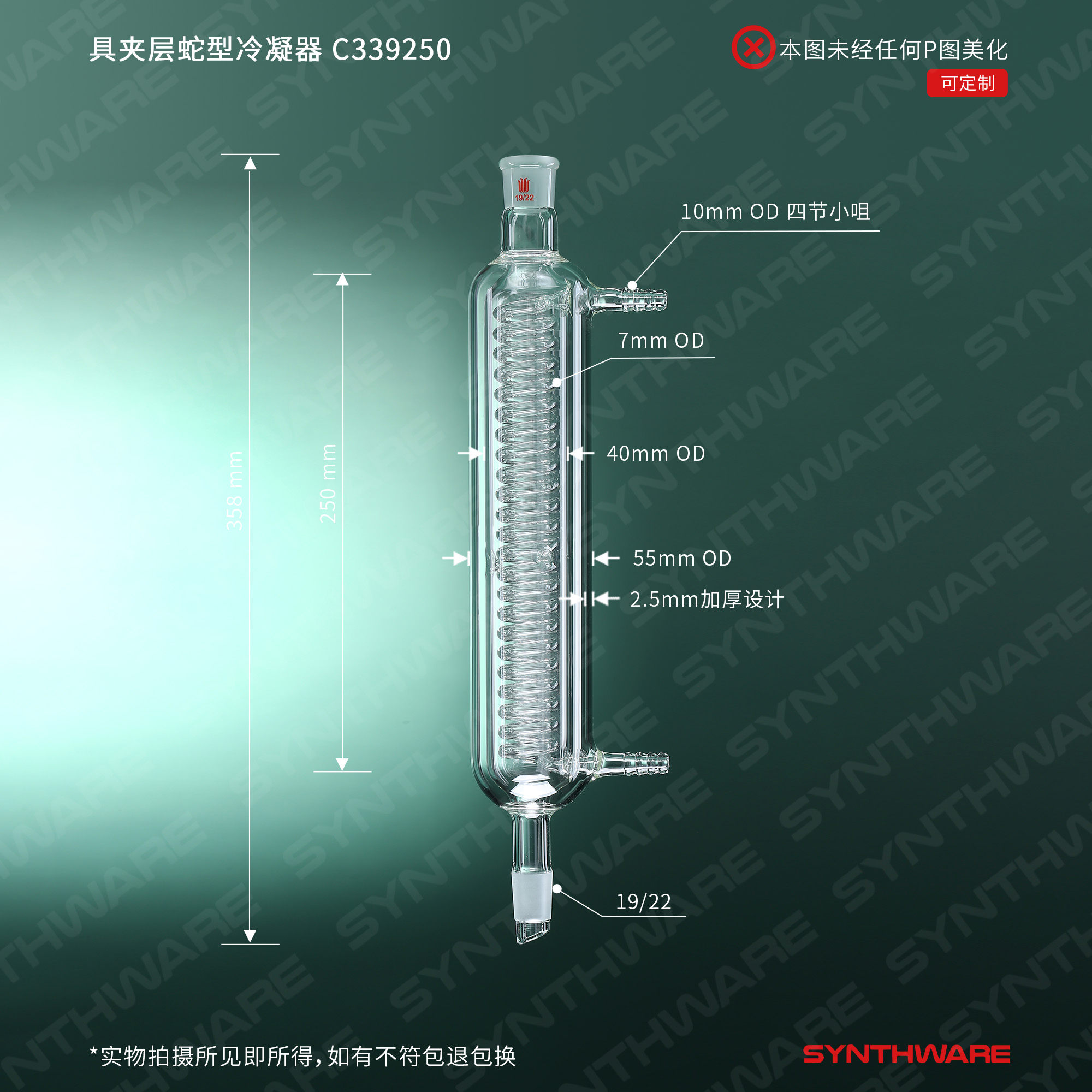 具夹层蛇型冷凝器,19/22,夹层长250mm,φ10mm小咀 C339250