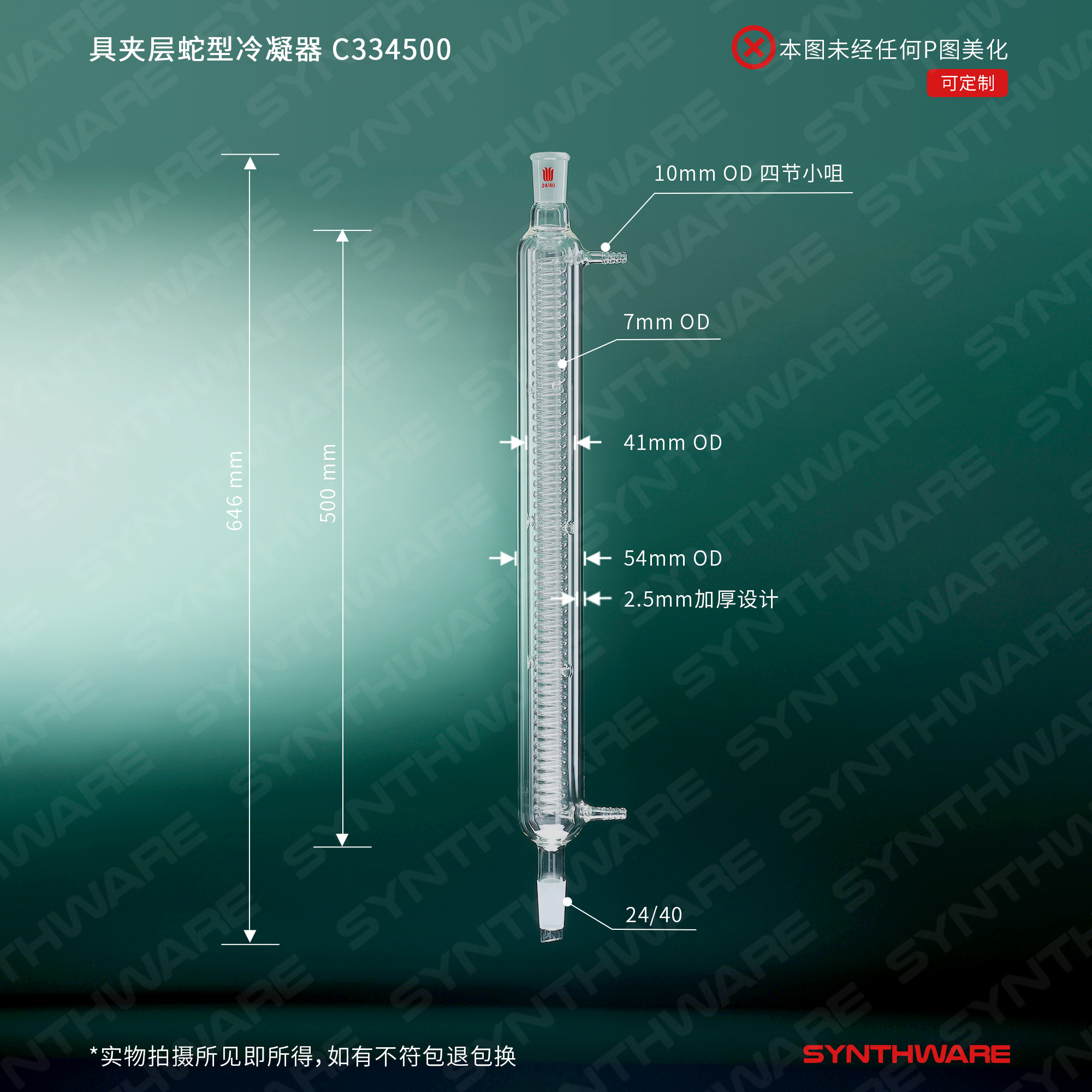 具夹层蛇型冷凝器,24/40,夹层长500mm,φ10mm小咀 C334500