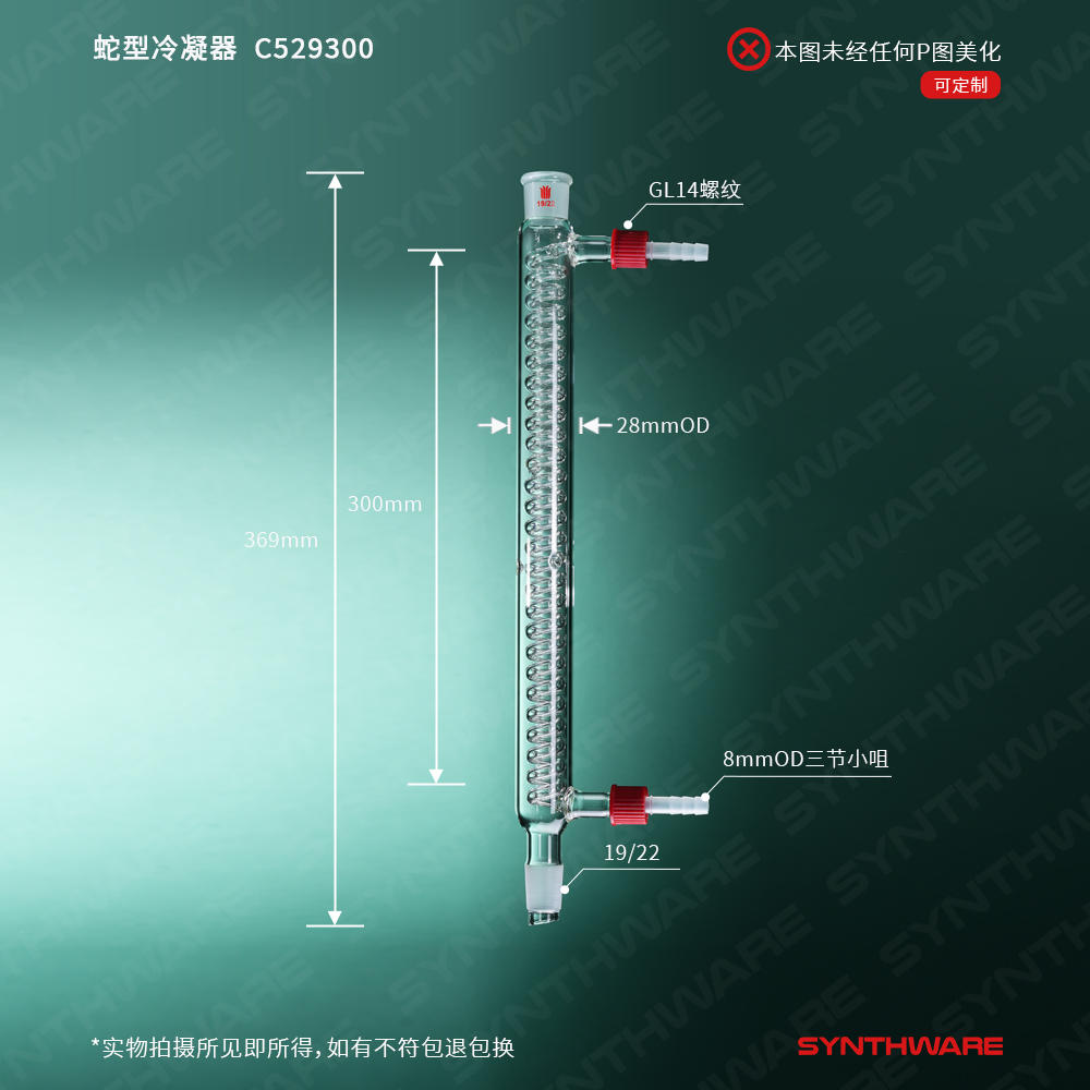 蛇型冷凝器,具可拆式小咀,19/22,有效长300mm,φ8mm小咀 C529300