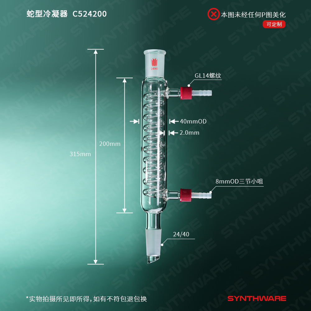 蛇型冷凝器,具可拆式小咀,24/40,有效长200mm,φ8mm小咀 C524200