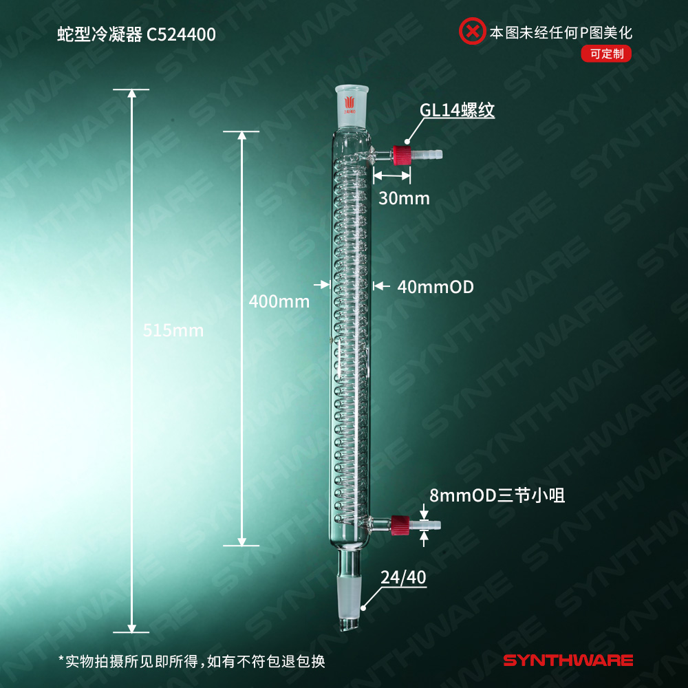 蛇型冷凝器,具可拆式小咀,24/40,有效长400mm,φ8mm小咀 C524400