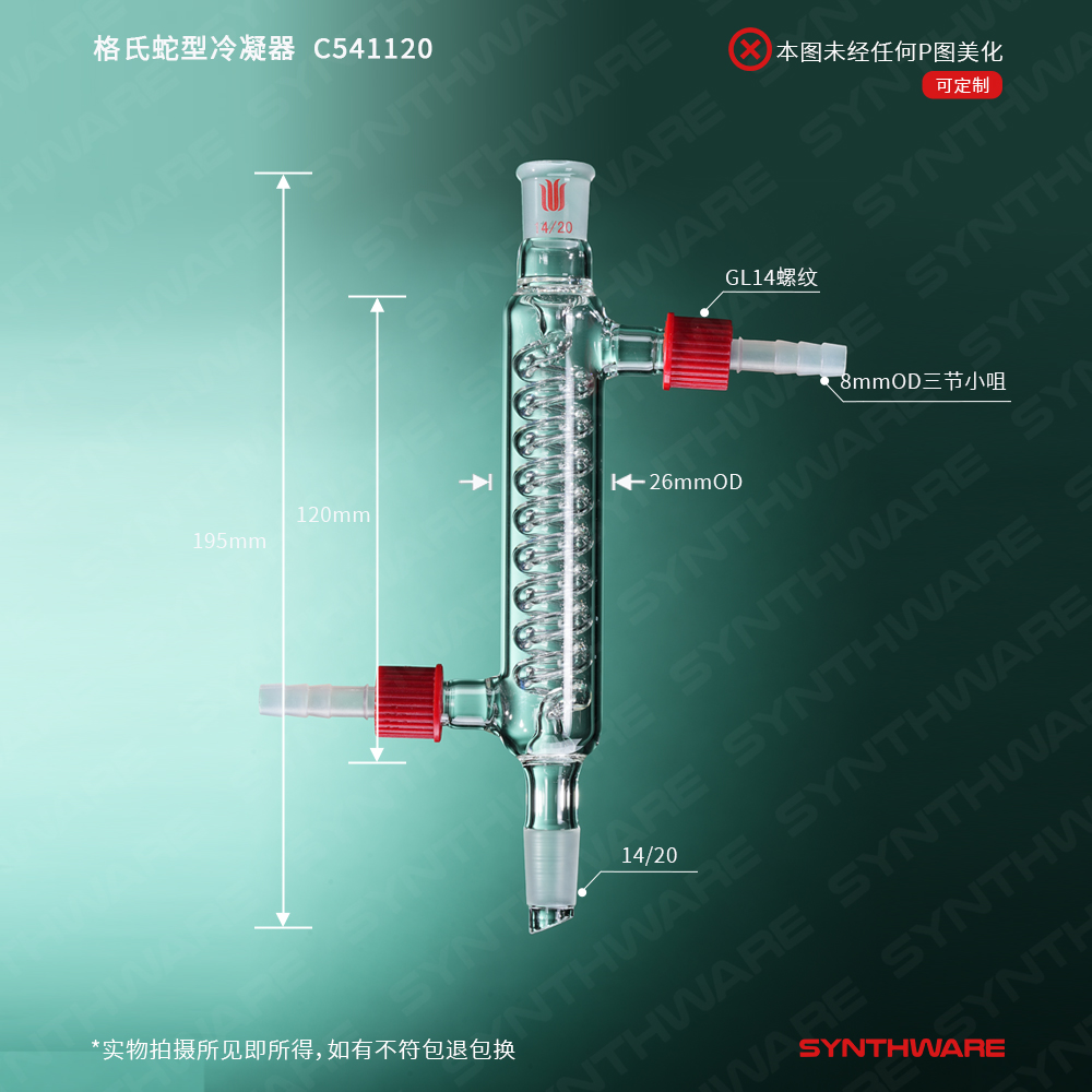 格氏蛇型冷凝器,14/20,有效长:120mm,φ8mm可拆式小咀 C541120