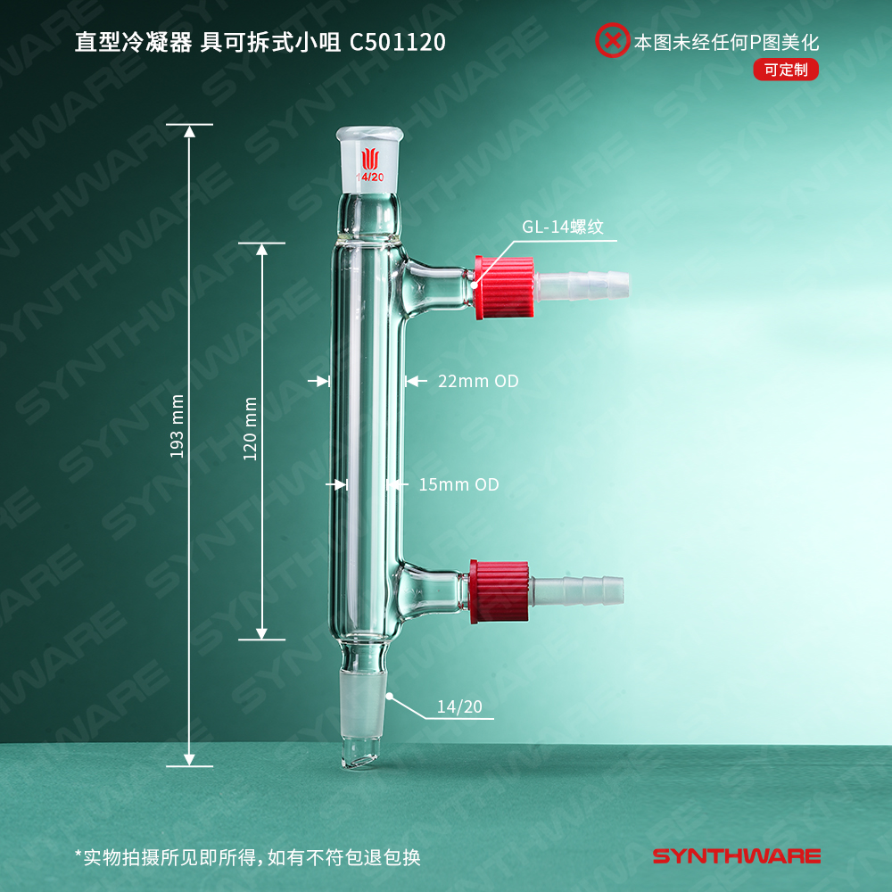 直型冷凝器,具可拆式小咀,14/20,有效长120mm,φ8mm小咀 C501120