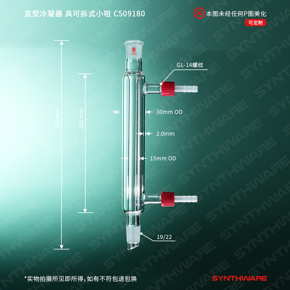 直型冷凝器,具可拆式小咀,19/22,有效长180mm,φ8mm小咀 C509180