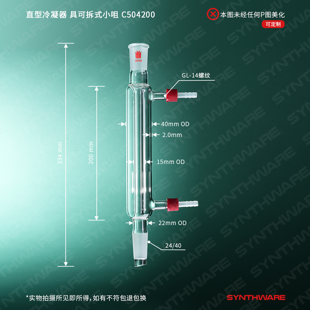 直型冷凝器,具可拆式小咀,24/40,有效长200mm,φ8mm小咀 C504200