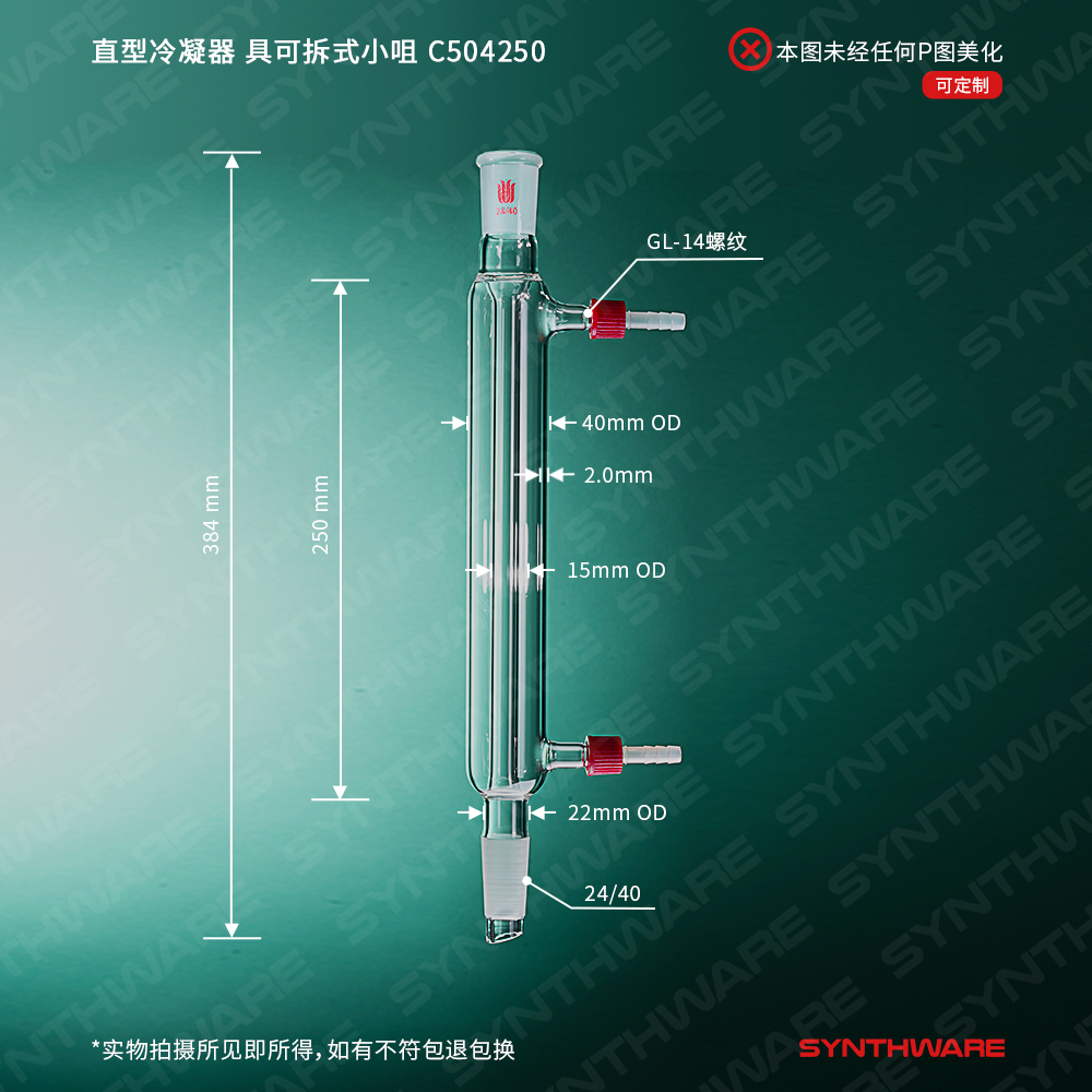 直型冷凝器,具可拆式小咀,24/40,有效长250mm,φ8mm小咀 C504250