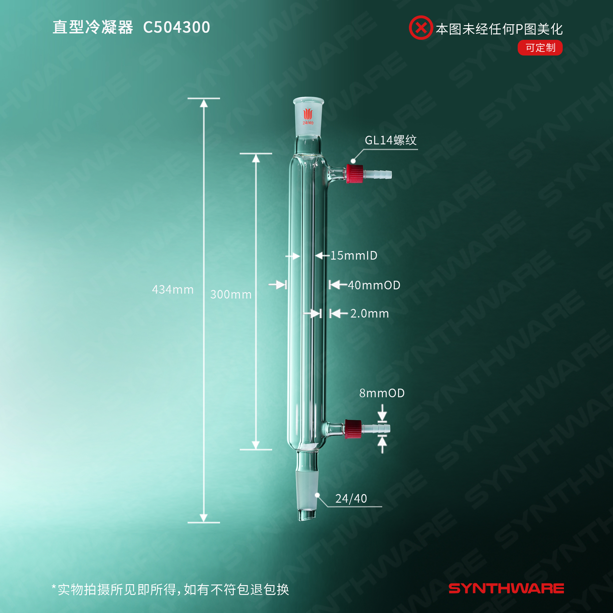 直型冷凝器,具可拆式小咀,24/40,有效长300mm,φ8mm小咀 C504300