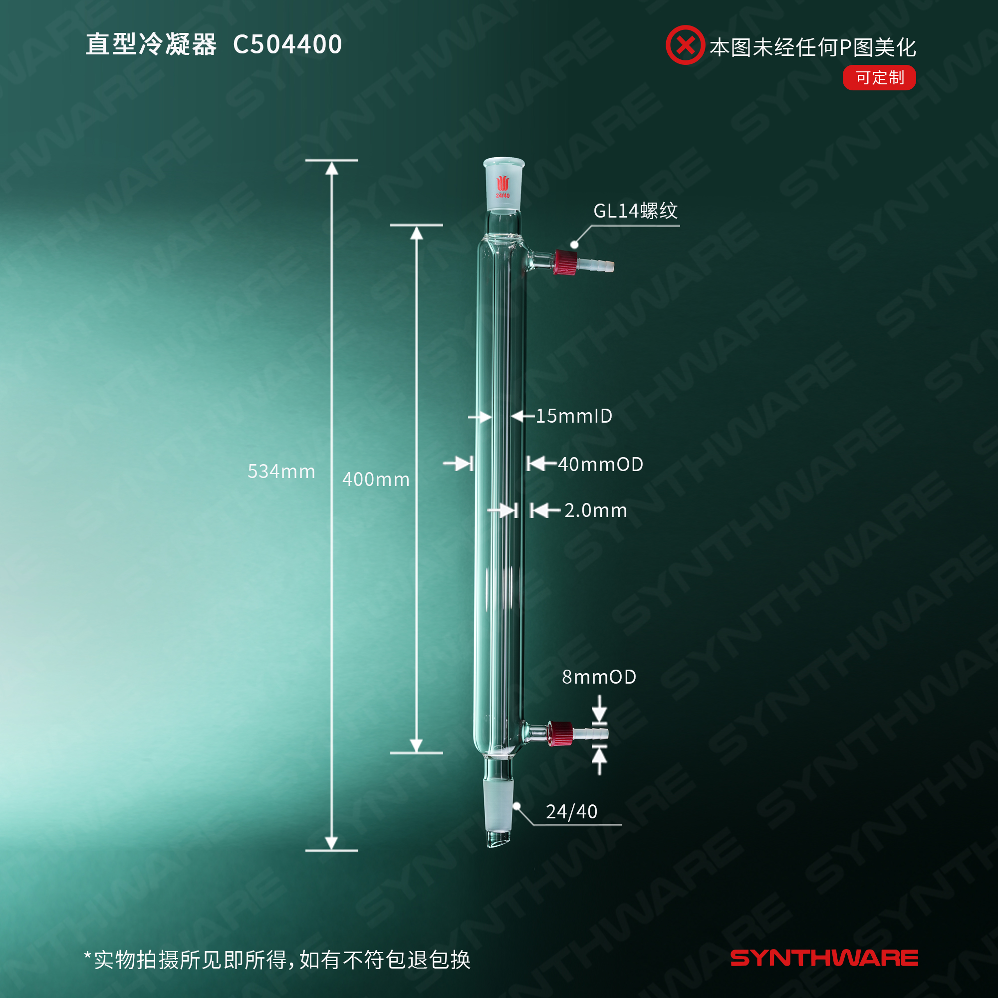 直型冷凝器,具可拆式小咀,24/40,有效长400mm,φ8mm小咀 C504400