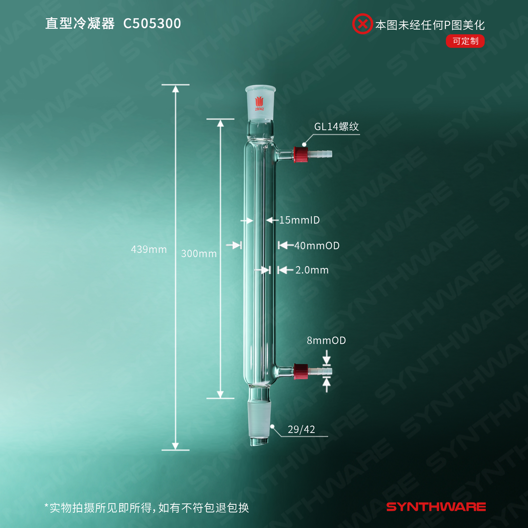 直型冷凝器,具可拆式小咀,29/42,有效长300mm,φ8mm小咀 C505300