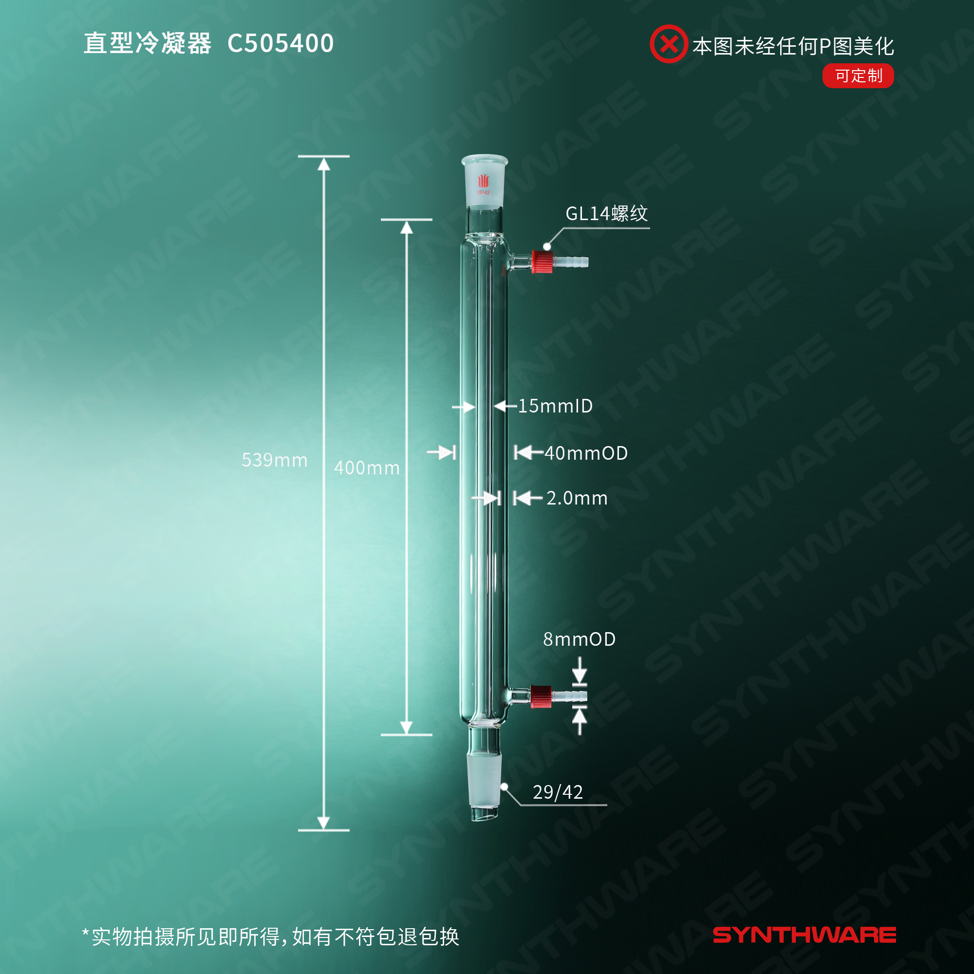 直型冷凝器,具可拆式小咀,29/42,有效长400mm,φ8mm小咀 C505400
