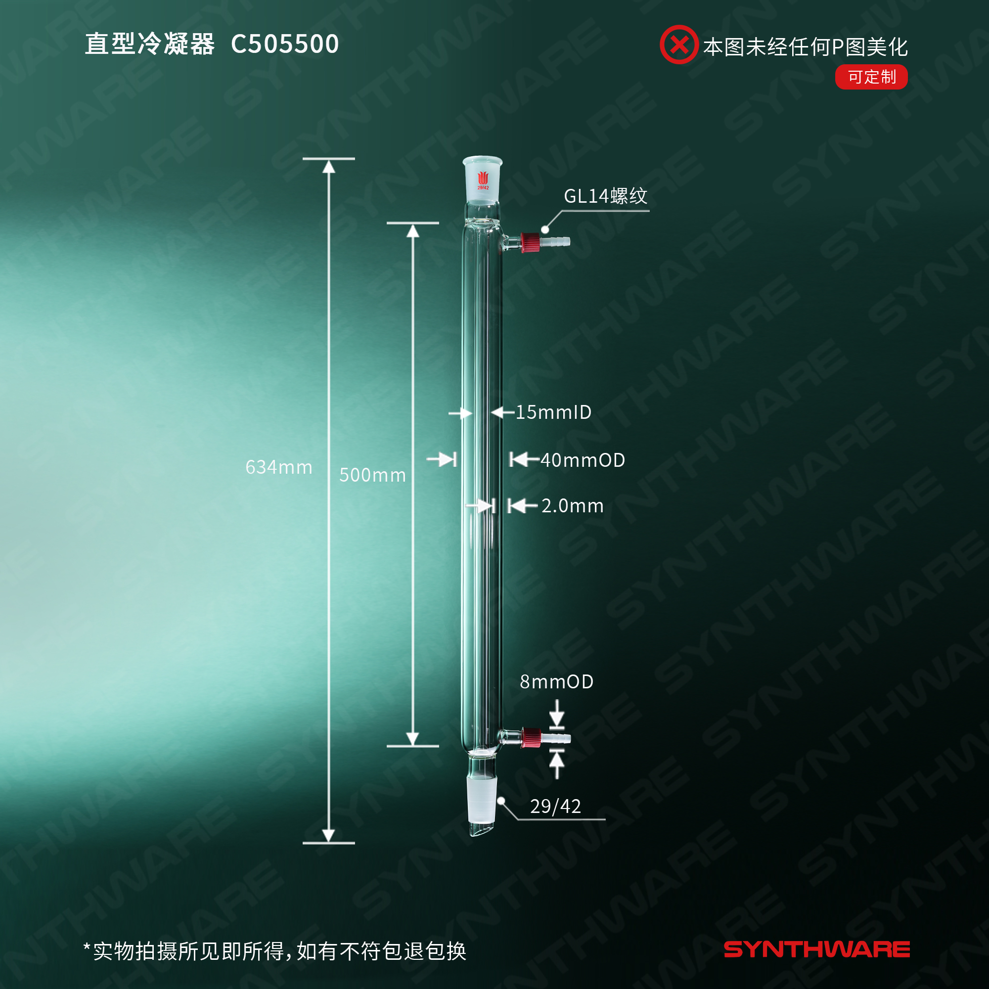 直型冷凝器,具可拆式小咀,29/42,有效长500mm,φ8mm小咀 C505500