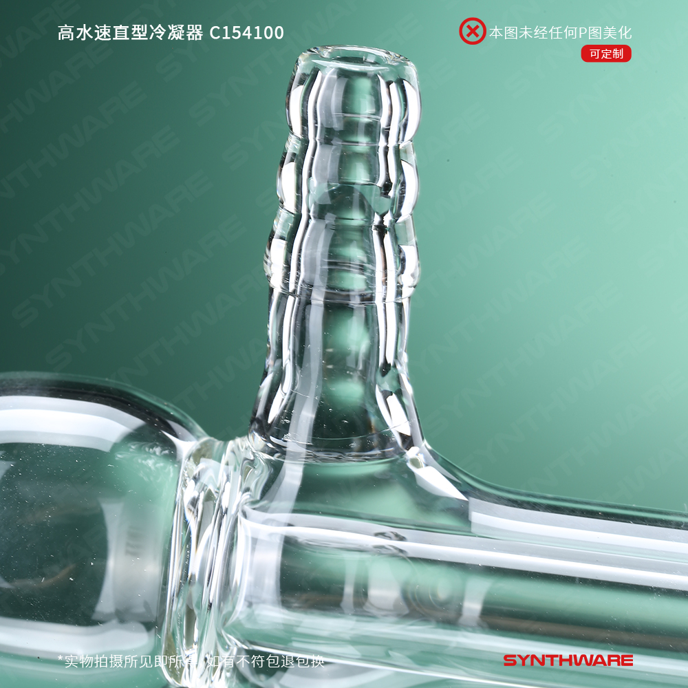 # 冷凝器上下两端为标准锥度磨口,上端内磨口由金刚砂研磨,锥度1:10经正弦规测试。下端外磨口由无心磨精密研磨,保证连接密封性。