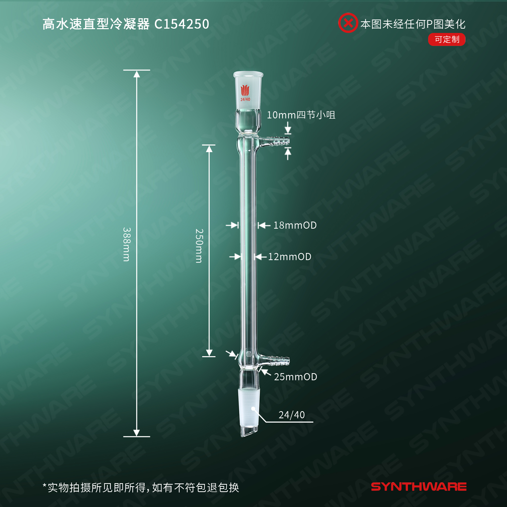 冷凝器 > 直型冷凝器 > 高水速直型冷凝器 > SYNTHWARE > 高水速直型冷凝器,24/40,夹层长度:250mm C154250