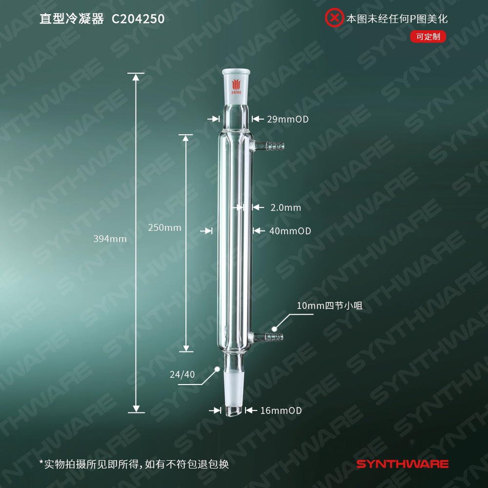 直型冷凝器,24/40,有效长度:250mm,φ10mm小咀 C204250