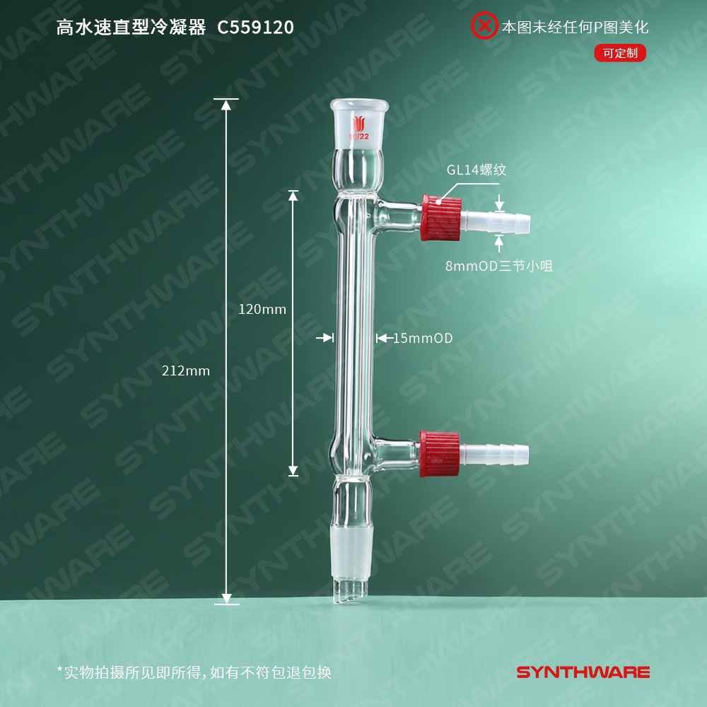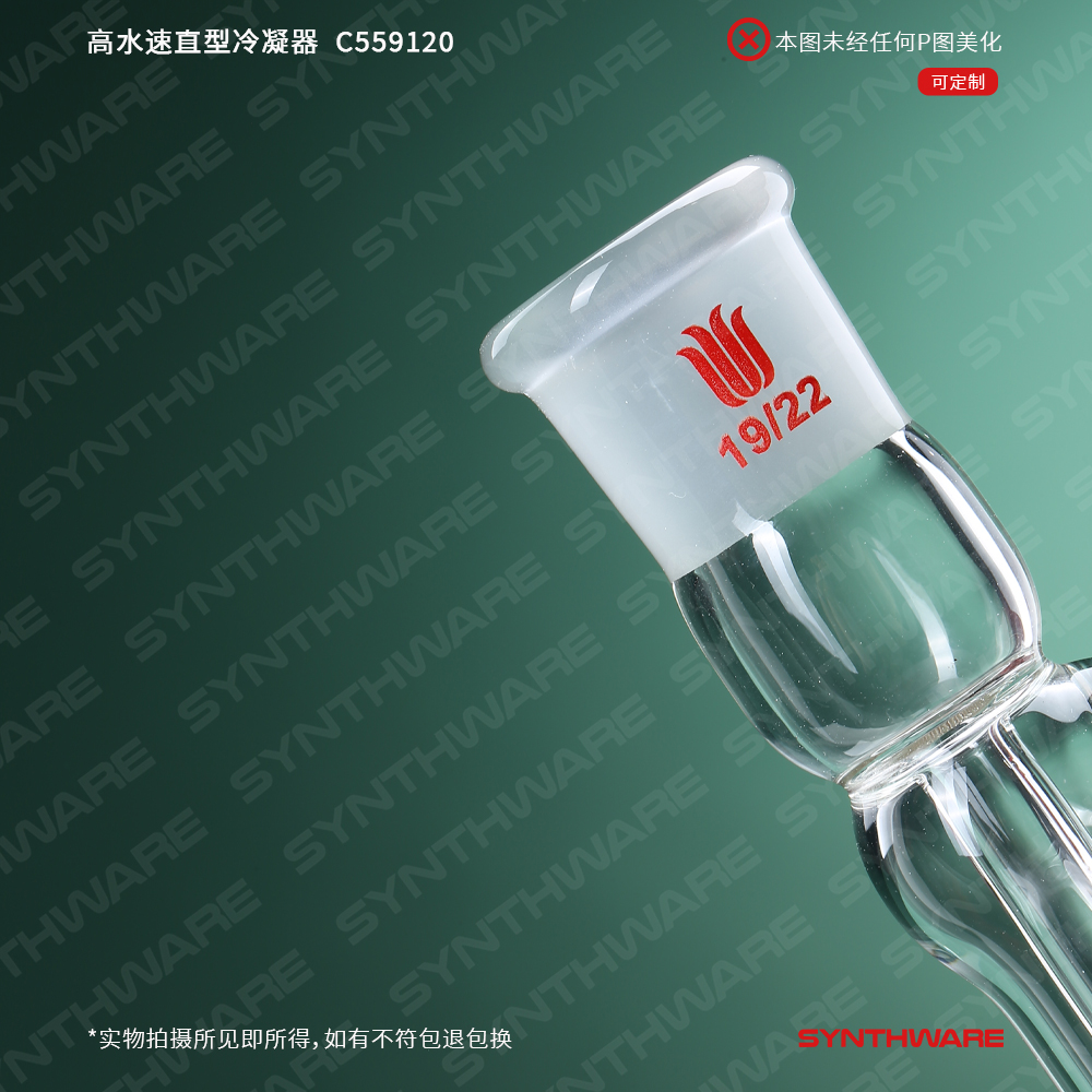 # 冷凝器上下两端为标准锥度磨口,上端内磨口由金刚砂研磨,锥度1:10经正弦规测试。下端外磨口由无心磨精密研磨,保证连接密封性。