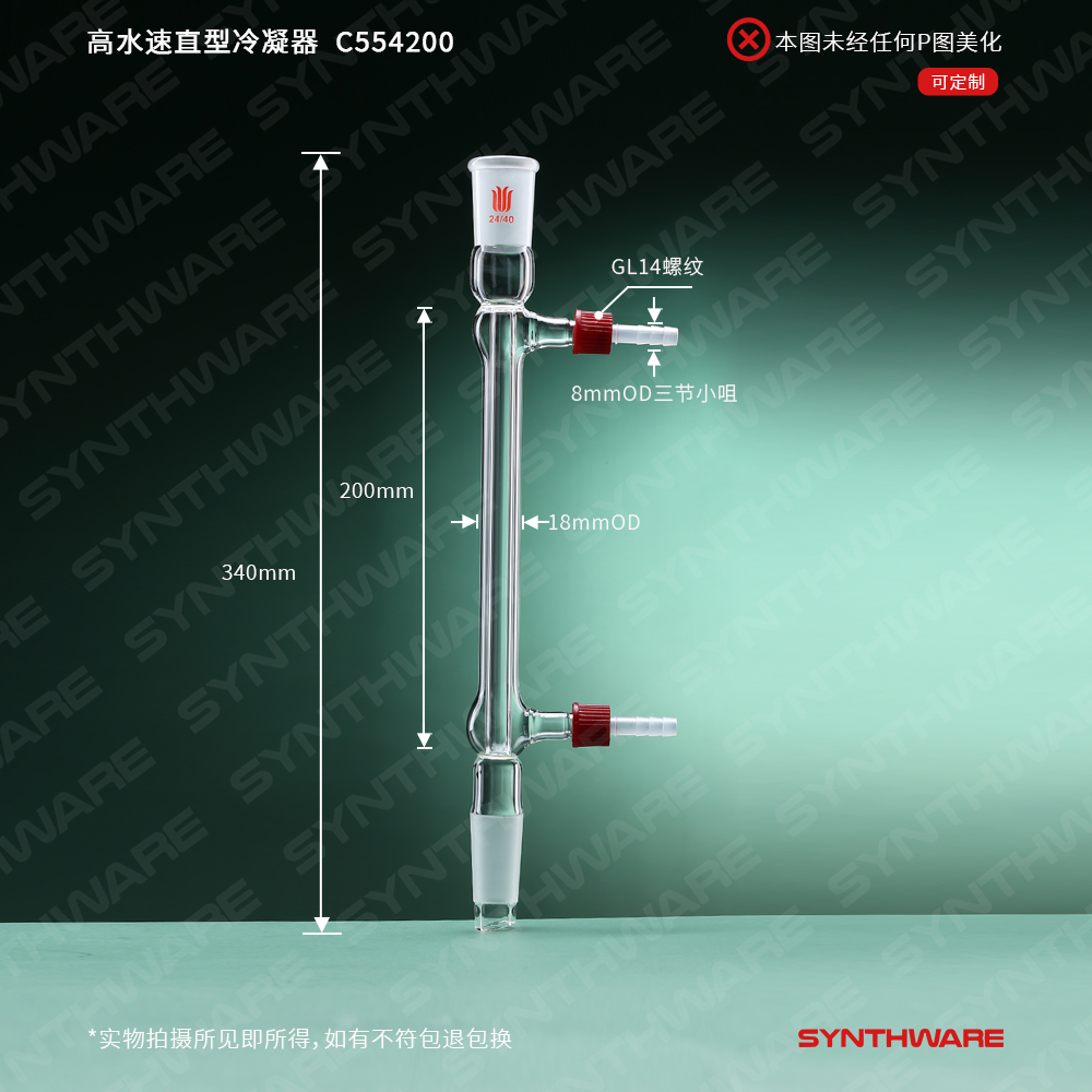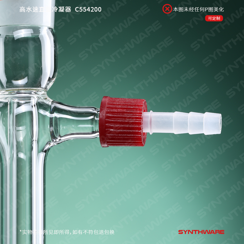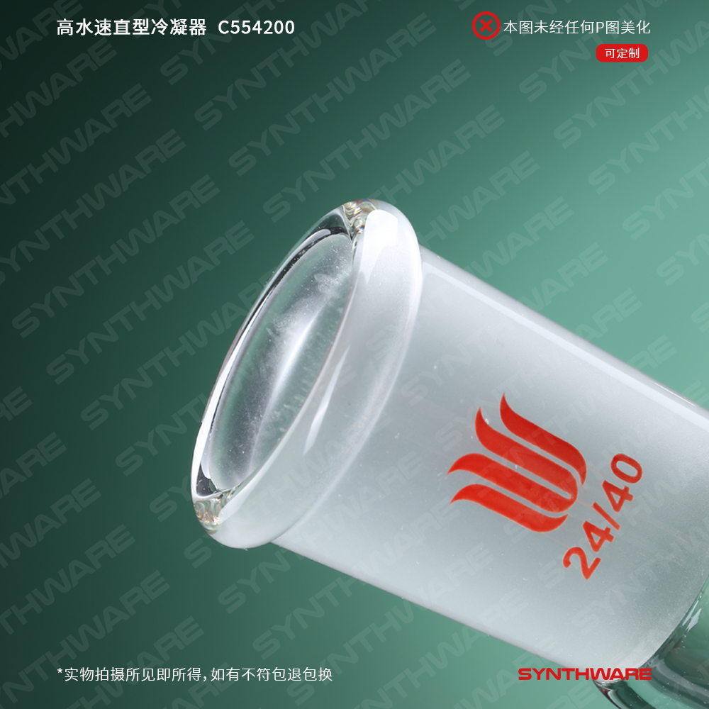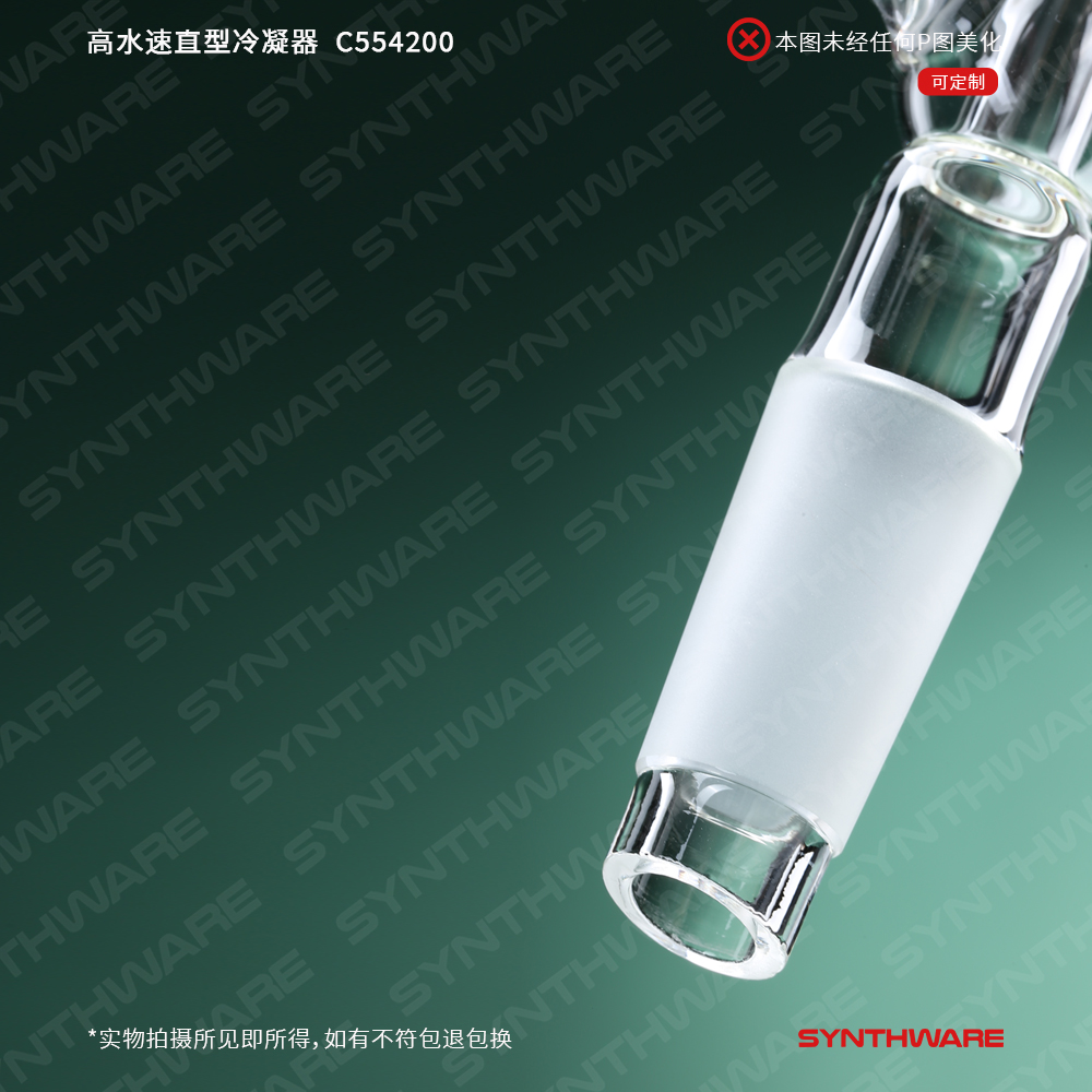 # 冷凝器上下两端为标准锥度磨口,上端内磨口由金刚砂研磨,锥度1:10经正弦规测试。下端外磨口由无心磨精密研磨,保证连接密封性。