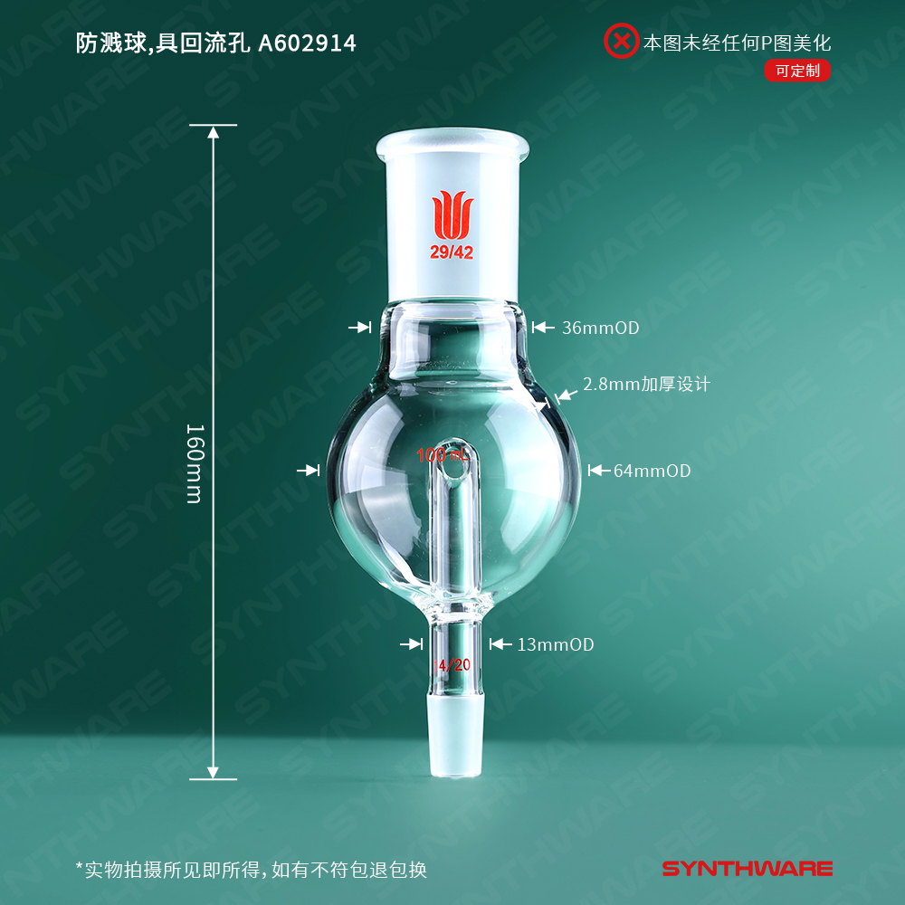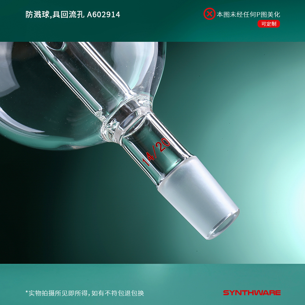 #同心度低于0.5mm 旋转不偏摆 出厂逐一检测,如有质量问题包退包换 #高精度内磨口 由400目金刚砂研磨,锥度1:10经正弦规测试 #外磨口精密加厚工艺 由高精度无心磨制得,加厚设计,不易裂开 #厚壁设计且均匀 耐负压,搭配旋转蒸发仪使用 #具回流孔设计 内管底部有两个4mm的回流孔,可使溶液回流到旋转蒸发瓶内