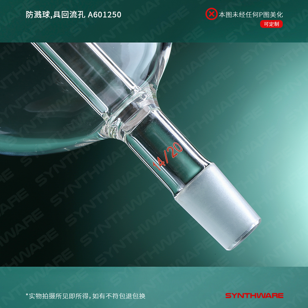 #同心度低于0.5mm 旋转不偏摆 出厂逐一检测,如有质量问题包退包换 #高精度内磨口 由400目金刚砂研磨,锥度1:10经正弦规测试 #外磨口精密加厚工艺 由高精度无心磨制得,加厚设计,不易裂开 #厚壁设计且均匀 耐负压,搭配旋转蒸发仪使用 #具回流孔设计 内管底部有两个4mm的回流孔,可使溶液回流到旋转蒸发瓶内