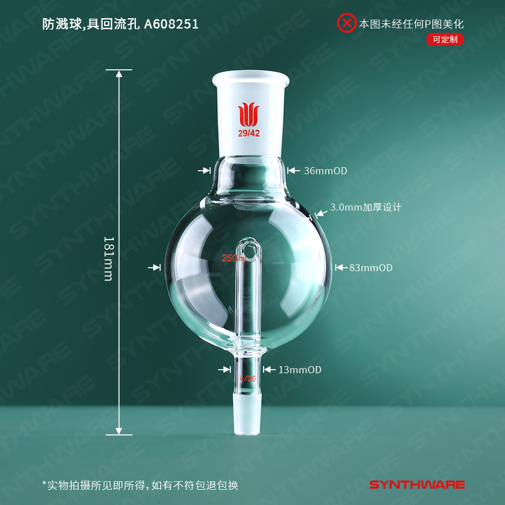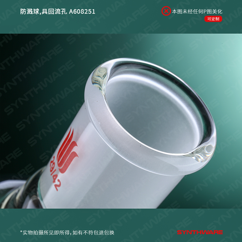 #同心度低于0.5mm 旋转不偏摆 出厂逐一检测,如有质量问题包退包换 #高精度内磨口 由400目金刚砂研磨,锥度1:10经正弦规测试 #外磨口精密加厚工艺 由高精度无心磨制得,加厚设计,不易裂开 #厚壁设计且均匀 耐负压,搭配旋转蒸发仪使用 #具回流孔设计 内管底部有两个4mm的回流孔,可使溶液回流到旋转蒸发瓶内