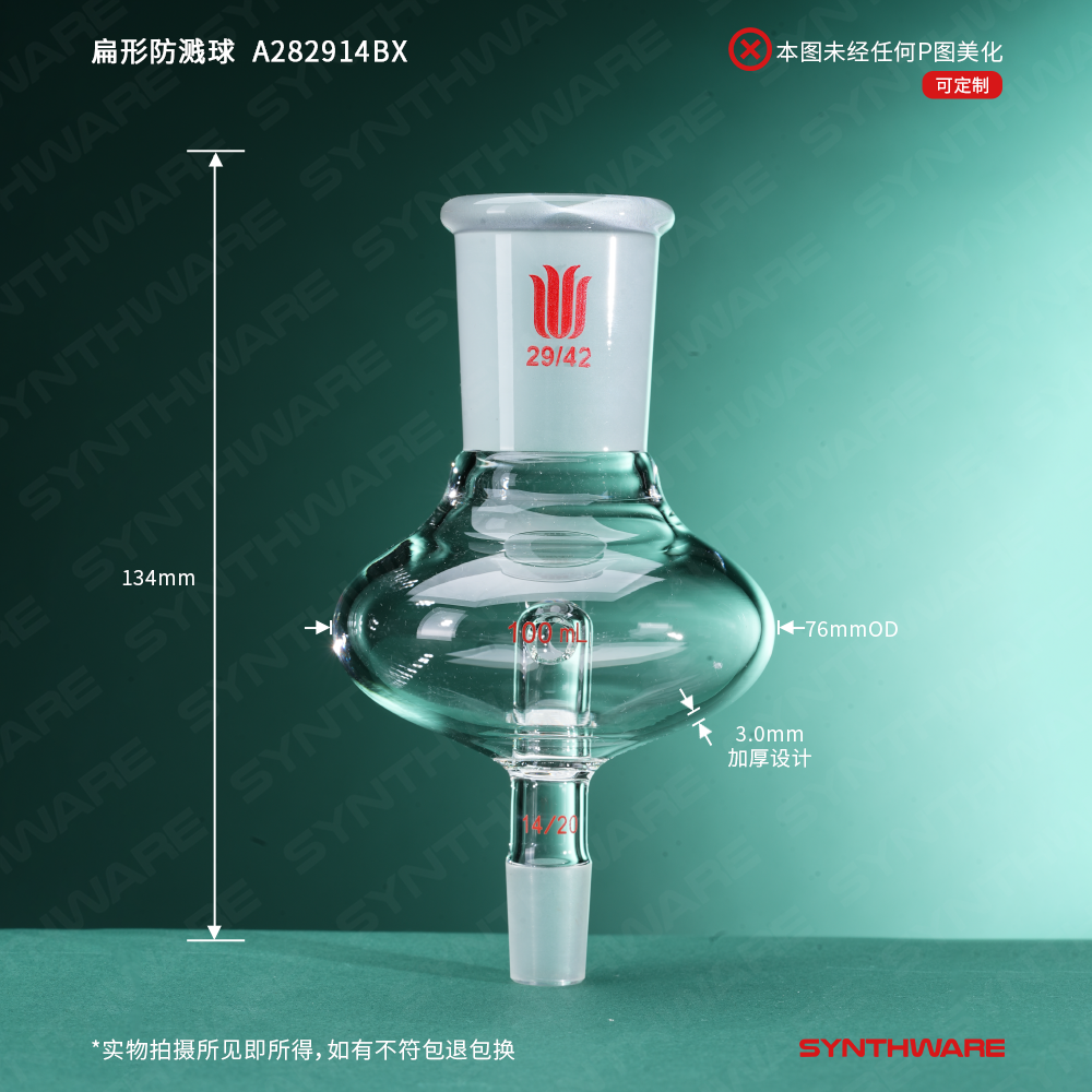 旋蒸类 > 防溅球 > 常规-扁形防溅球 > SYNTHWARE > 扁形防溅球,上磨口:29/42,下磨口:14/20,100ml A282914BX
